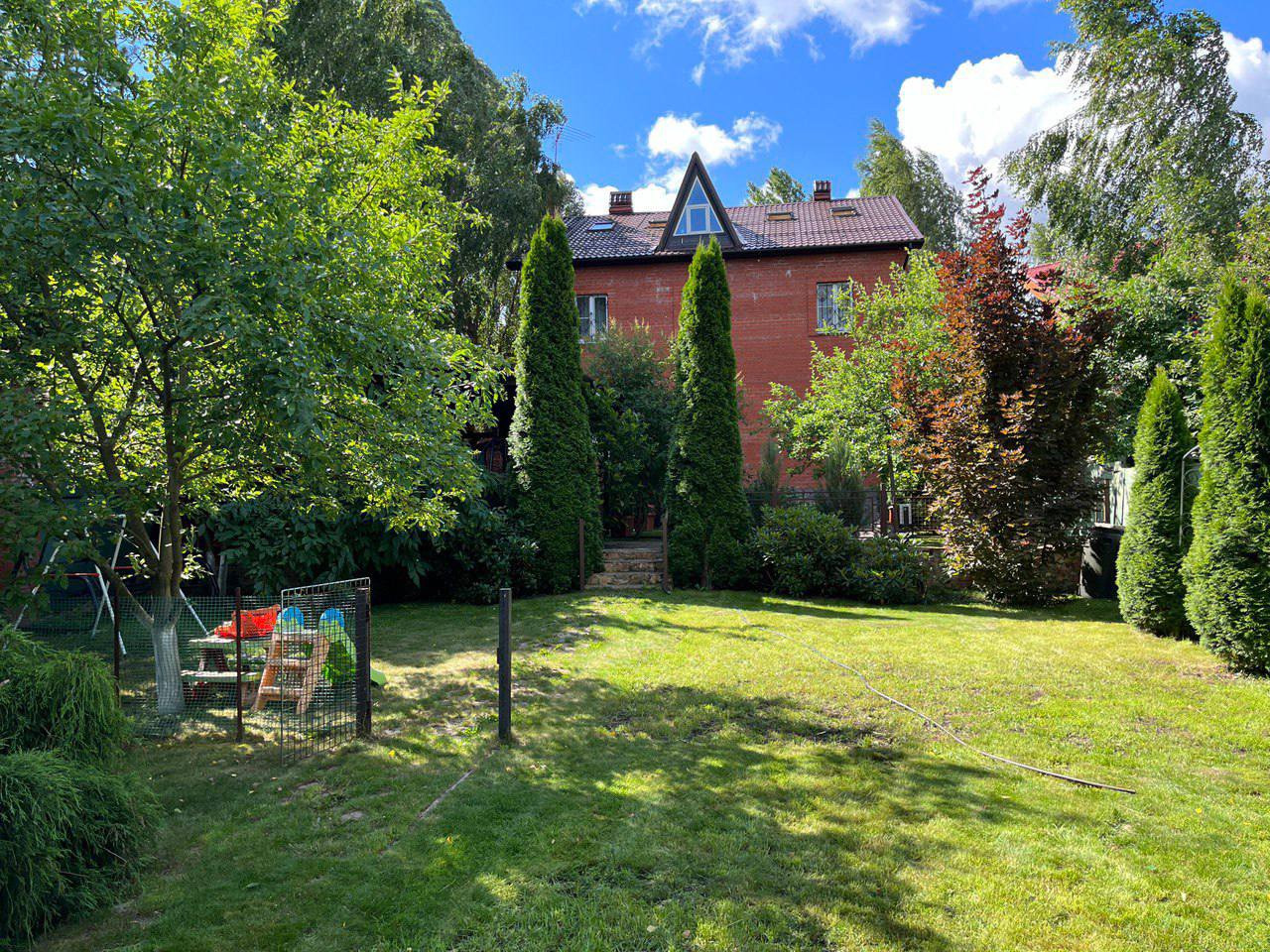 Продаётся 3-х этажный дом, стены кирпич толщиной 60 см. Первый этаж: кухня 20 кВ.м., гостиная с новым камином 37 кВ.м., комната и с/у с душевой кабиной, второй этаж: 5 спален, с/у с душевой кабиной, третий этаж мансарда, открытая планировка и с/у с душевой кабиной. Из окон прекрасный вид на озеро Клязьма. Гараж с котельной и погребом, стоянка на 5 машин. За домом зона отдыха с большой  верандой, плодовые деревья, высокие туи. Один собственник, свободная продажа, оперативный показ.