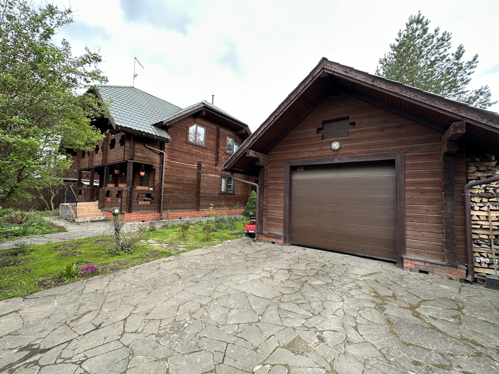 - Гараж с чердаком на одну машину . Всего можно припарковать 3 автомобиля - один в гараже и два возле него.