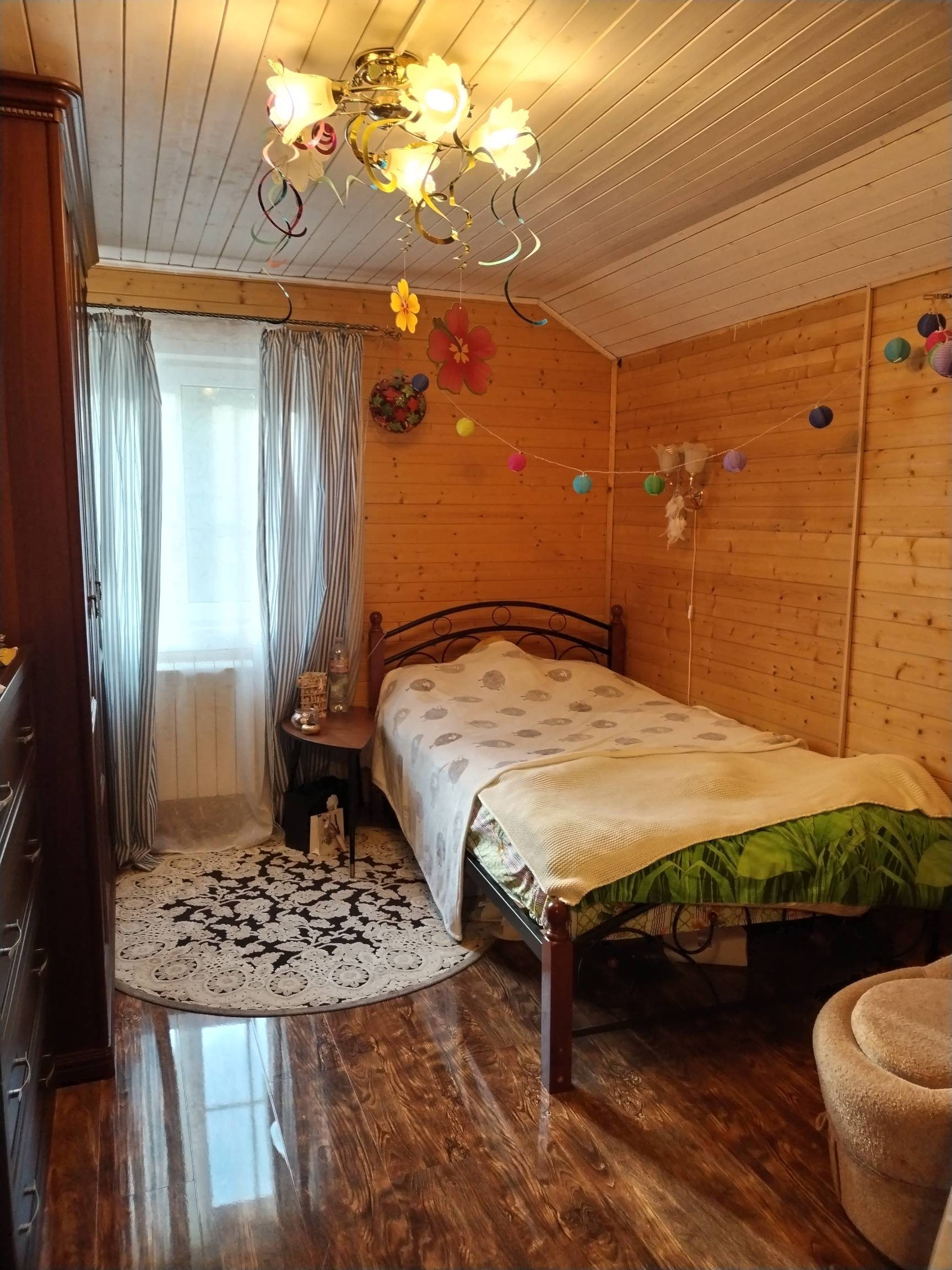 Площадь дома 115,6 кв.м. На первом этаже 1 спальня, гостинная, кухня, санузел. На втором этаже 3 спальных комнаты, санузел, балкон (выход на балкон из 2х комнат), так же имеется погреб и кладовое помещение . Дом каркасный ,утеплен , отделан сайдингом, на крыше металлочерепица, на окнах теплые двухкамерные стеклопакеты. Дом очень чистый, теплый и уютный , для круглогодичного проживания.