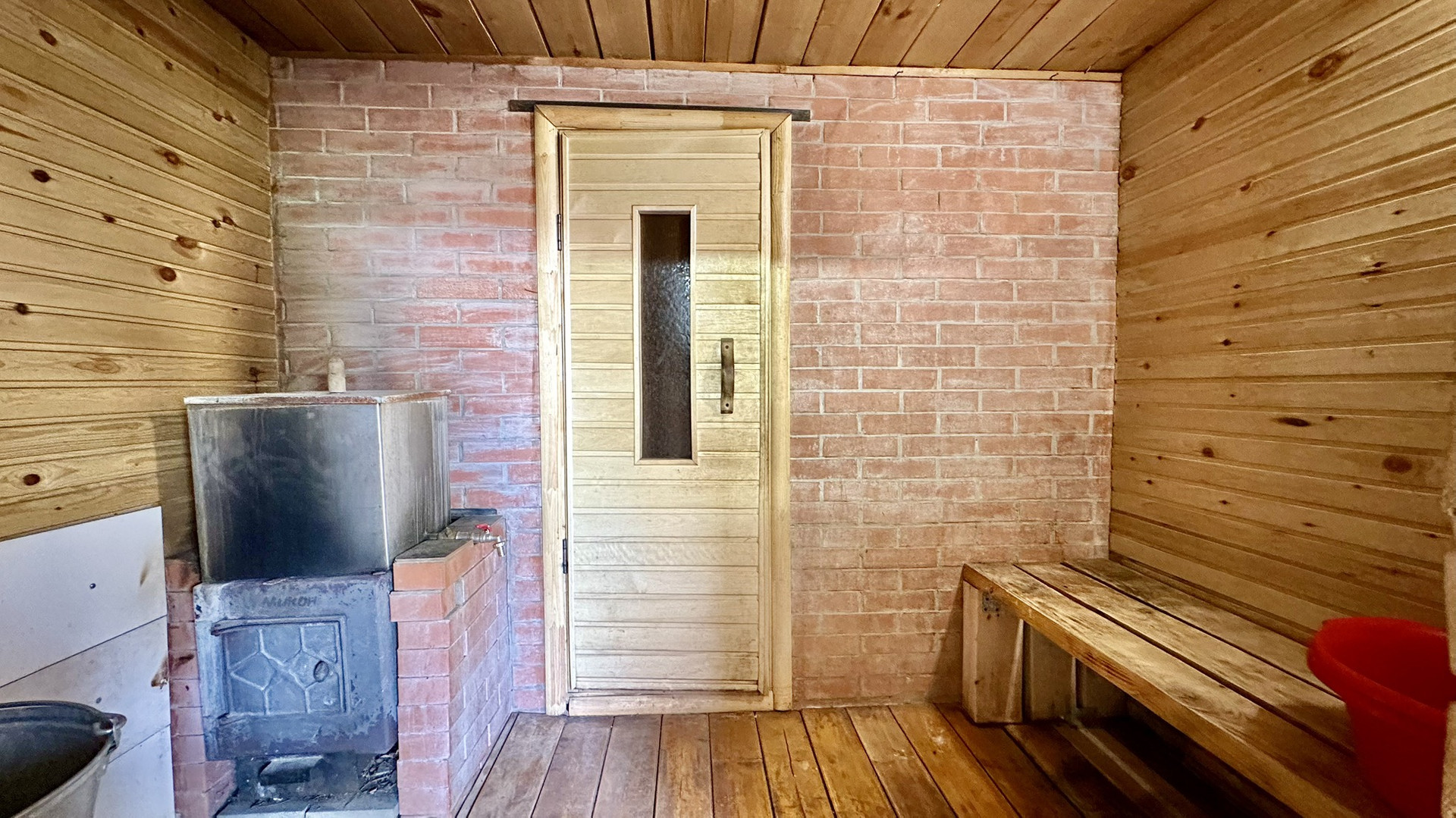 - Печь чугунная, очень эффективная, даже зимой отлично прогревается до 100 градусов.