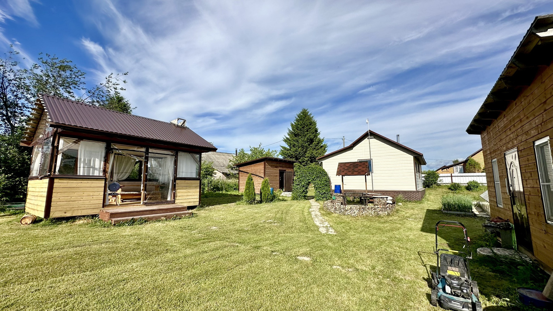 ⚜ Колодец – глубина 12 метров, капитально оборудован: углублен, вычищен, добавлены новые кольца, сделан домик. Вода не заканчивается в любую погоду. Установлен мощный скважинный насос-водомет. В подполье установлен гидроаккумулятор и автоматика управления насосом. С колодца вода разведена на все точки участка – дом, баня, летняя кухня, в две теплицы и парник.