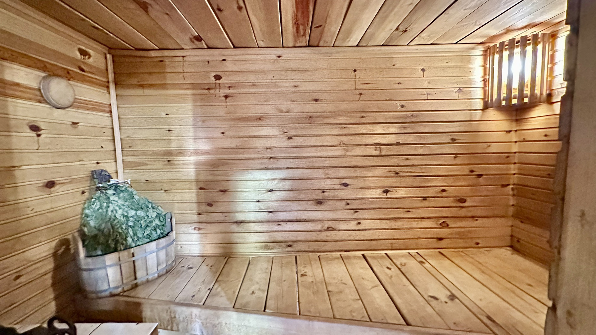 - В баню заведена вода, установлен новый водонагреватель на 100 литров и душ. Подушка под баней подлита бетоном, полы недавно полностью перестелены.