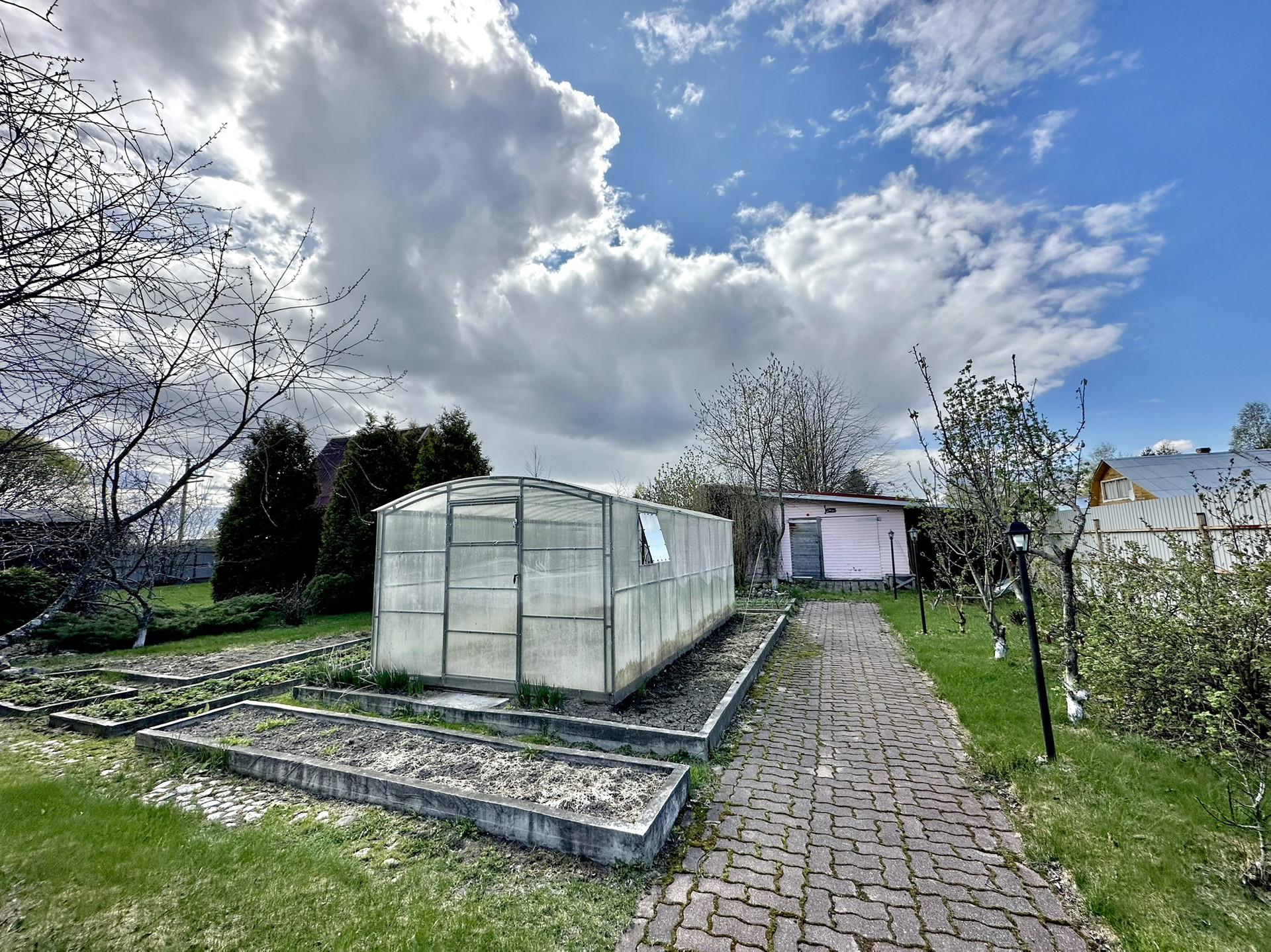 Рядом аккуратные грядки.