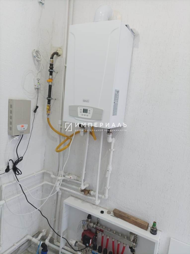 Коммуникации: электричество-15 кВт (3 фазы), ГАЗ (отопление от газового двух контурного котла BAXI + весь первый этаж «тёплый пол», вода-скважина, канализация-септик. Есть возможность подключить интернет (оптоволокно).