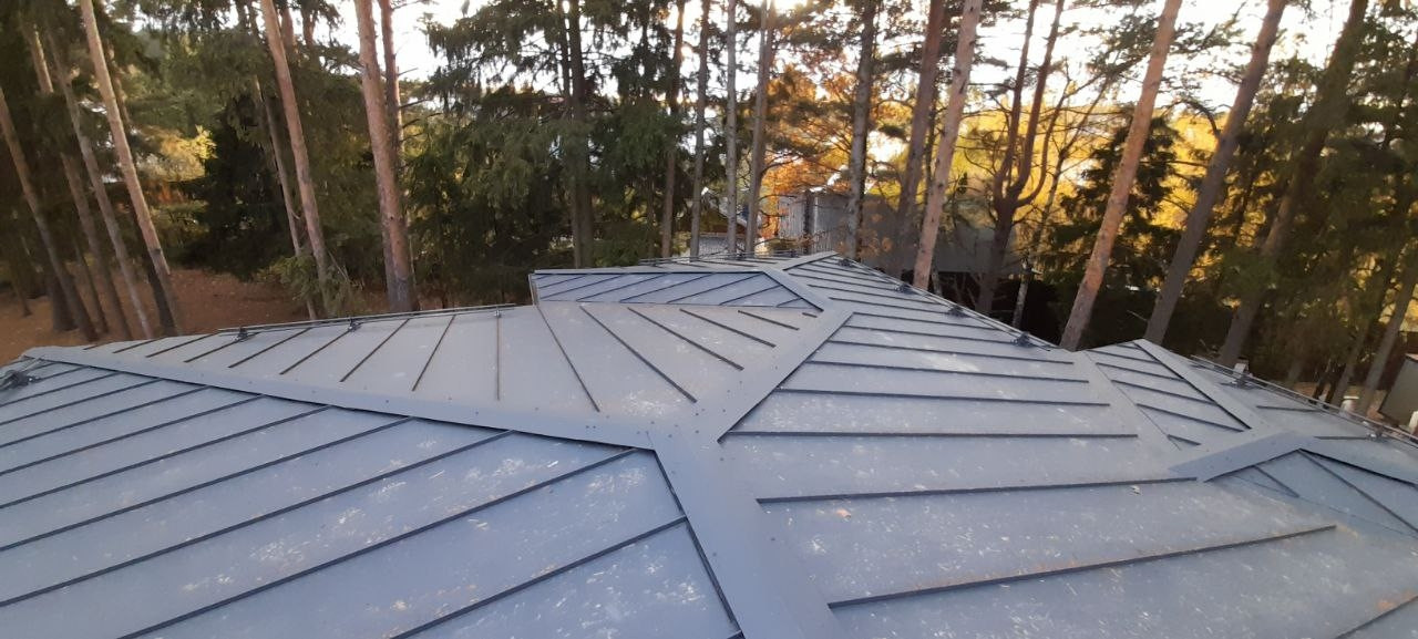 В основе архитектурного решения – лежит стиль «Прерий». Преобладание горизонтальных линий и простота форм, пологая вальмовая крыша с широкими свесами, массивное остекление окон, прозрачность ограждений и невесомость покрытия террасы, наличие двухсветного пространства и раздвижного портала в гостиной максимально растворяют дом в ландшафте, стирая границы между помещениями и улицей. Цветовая гамма фасадов выполнена в стильном оттенке масла «Бариста» вкупе с фальцевой кровлей в цвете «графит».