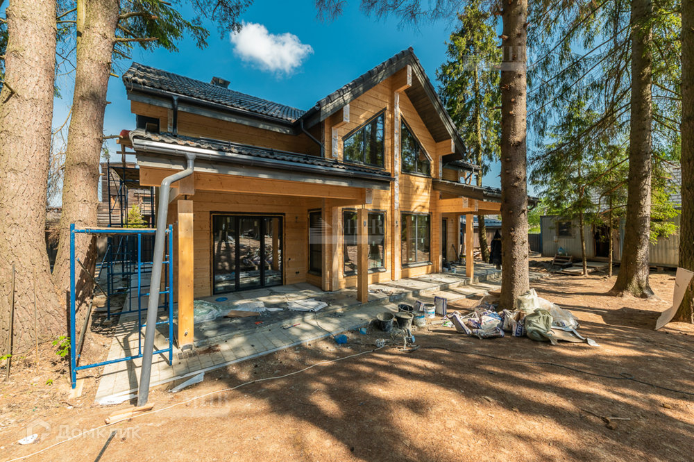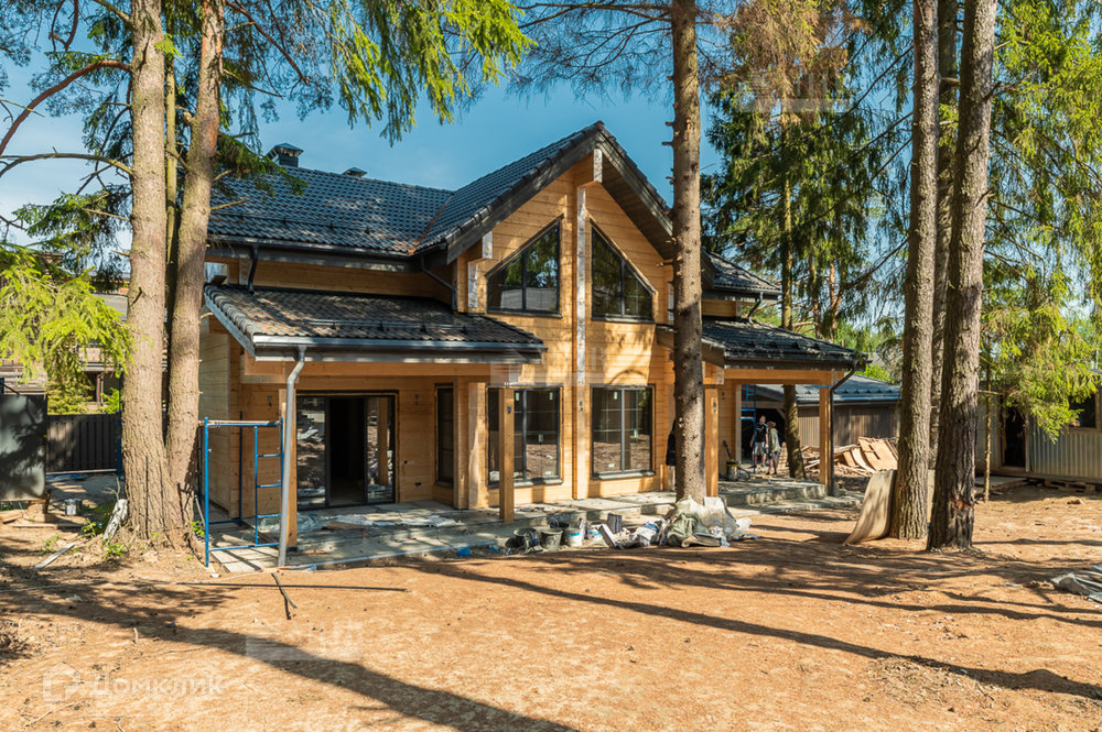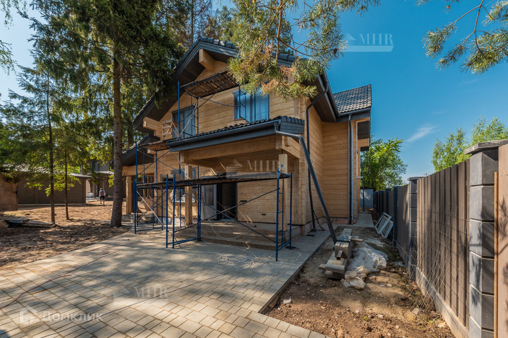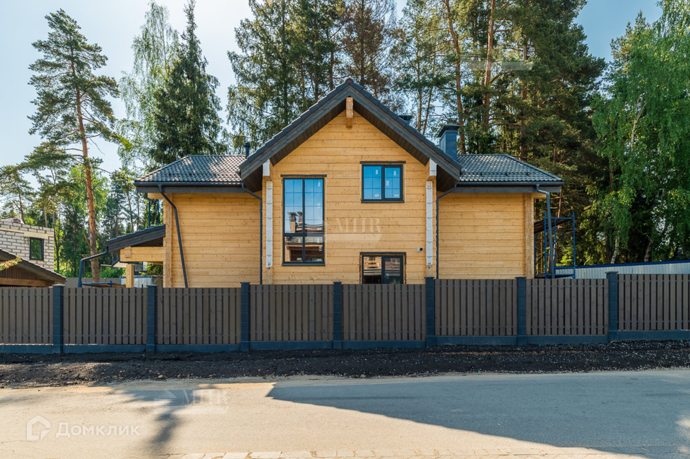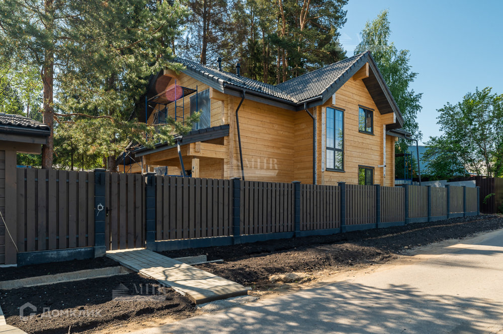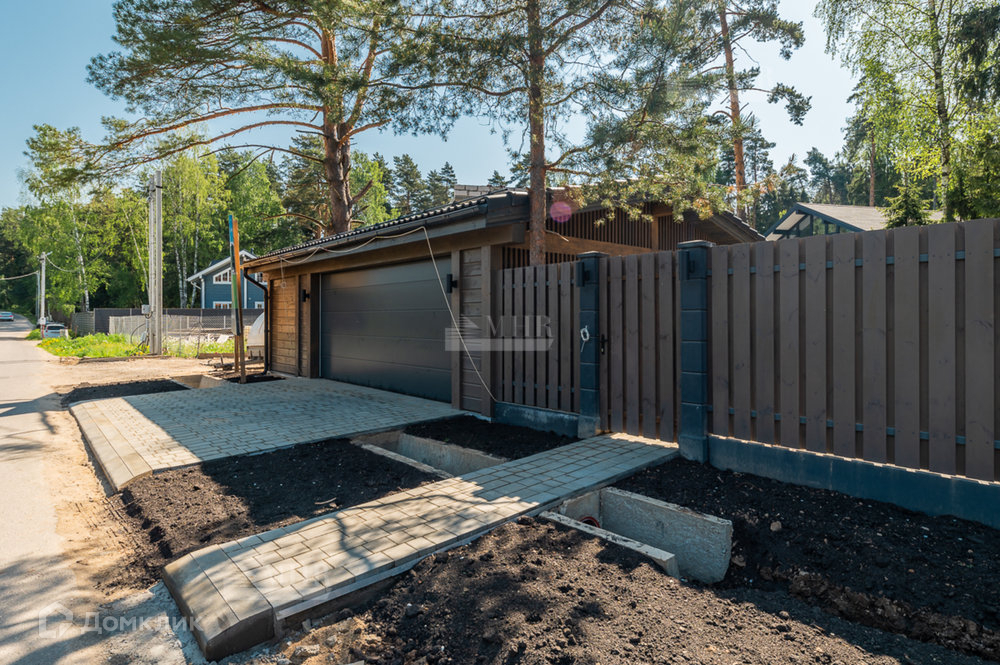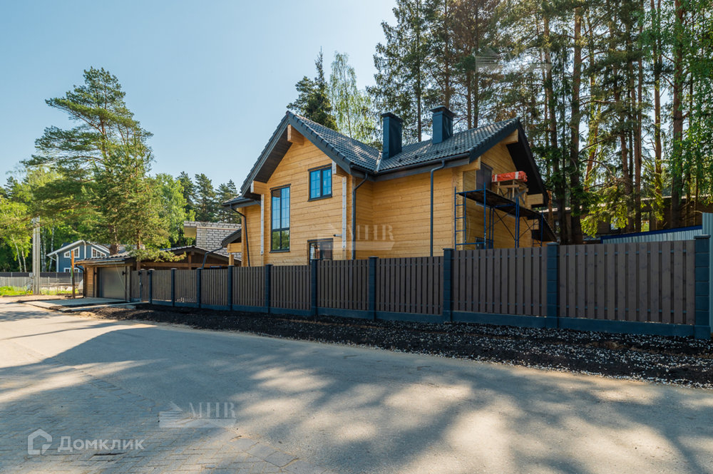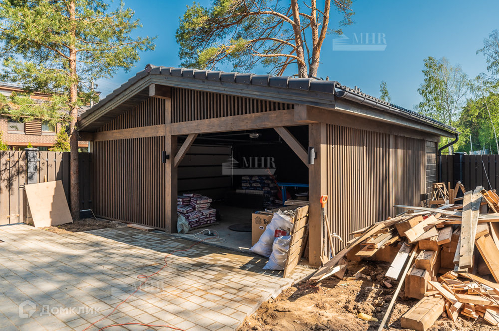 На участке расположен сам дом 230м² и навес, также из клееного бруса, для 2 автомобилей. Большая терраса с уличным освещением. Забор по периметру.