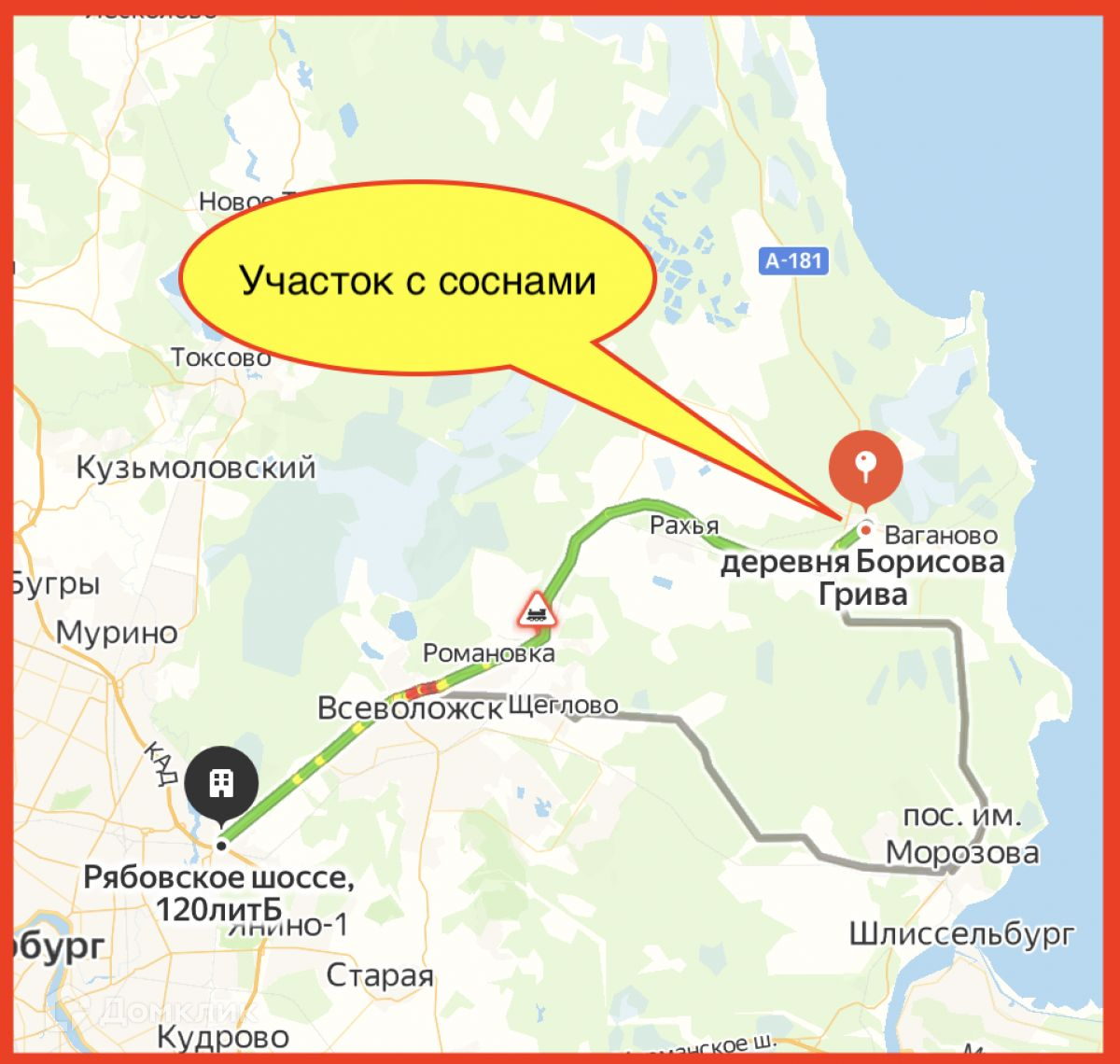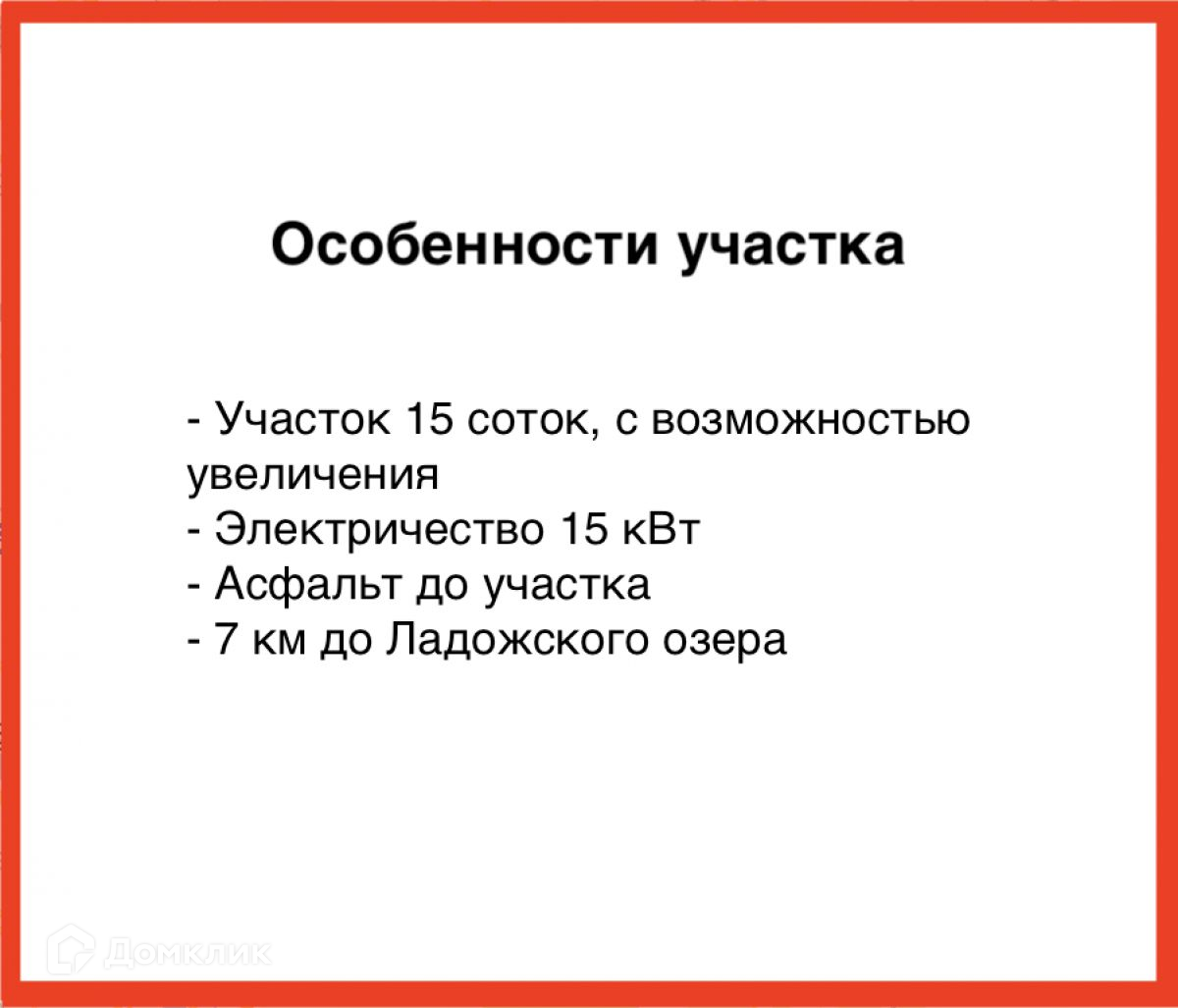 Участок в 5 километрах от Ладожского озера. Асфальт до участка.