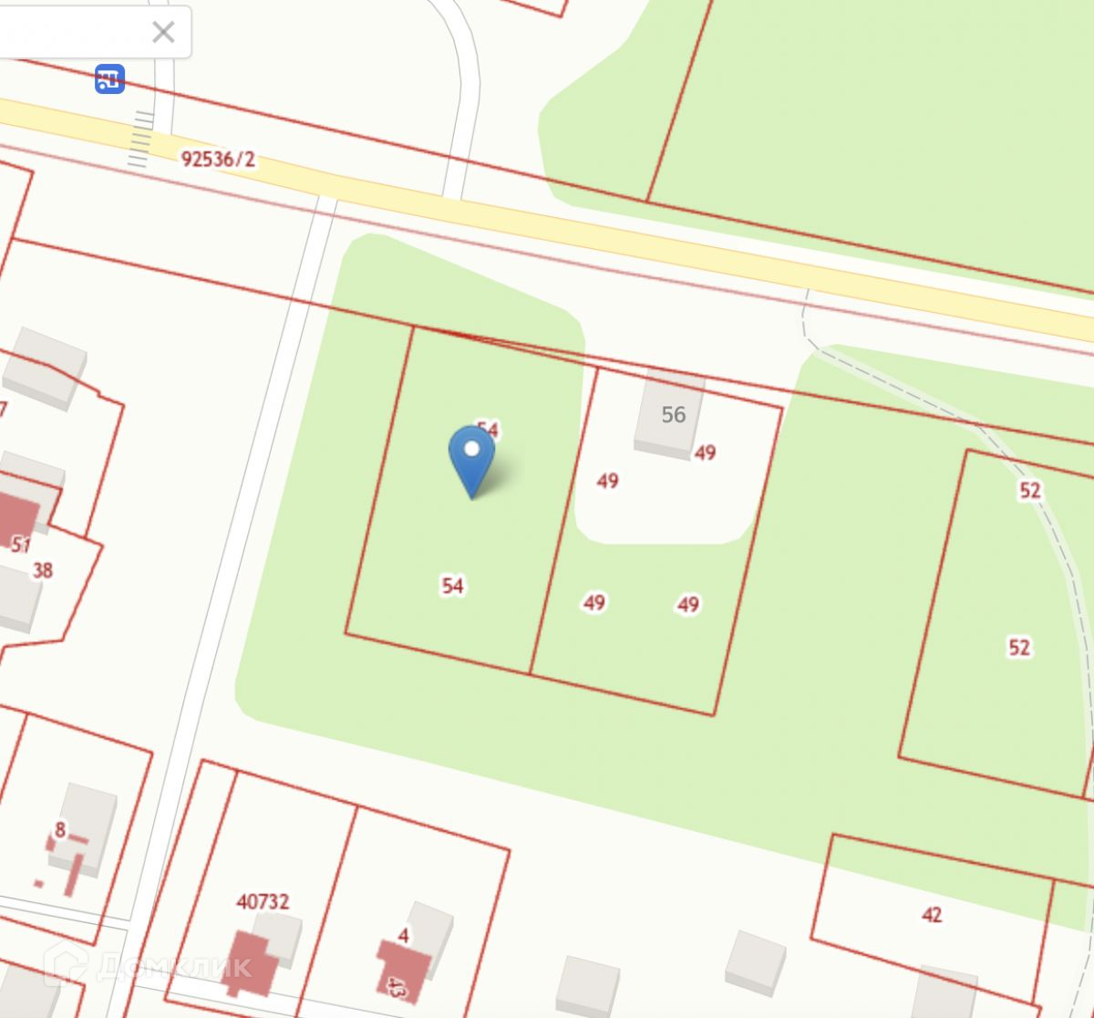 Участок расположен вдоль дороги (удобно под коммерцию)
