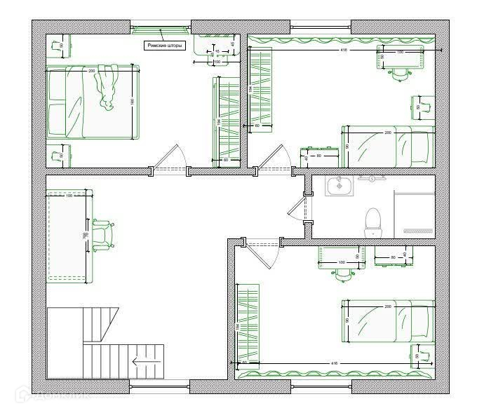 Нa втором этаже три спальни. Фундамент ленточный. На территории имеется подсобное помещение. Дорога удобная, подъезд круглогодичный. Проектом развития предусмотрена парковая зона, детский сад.