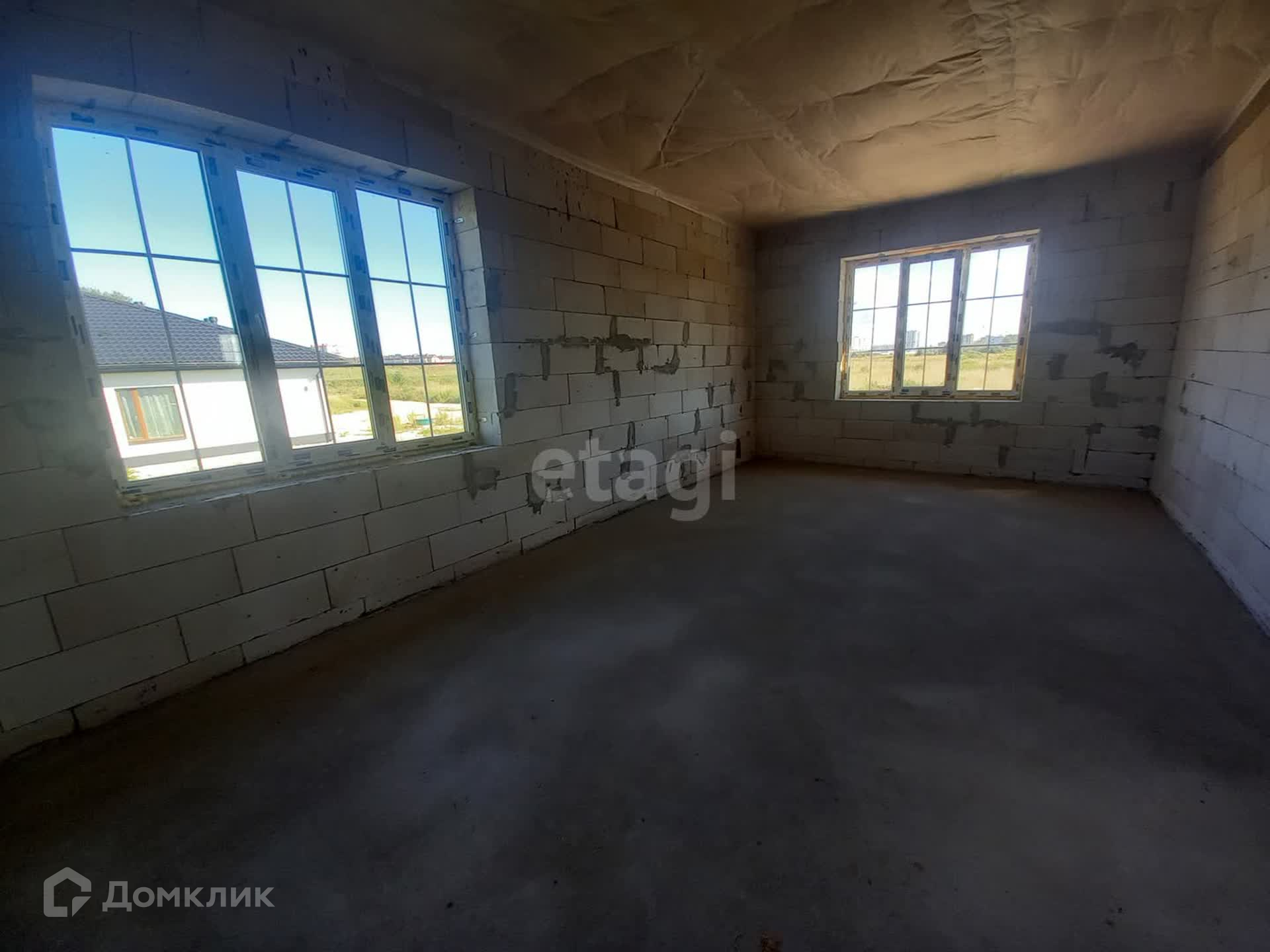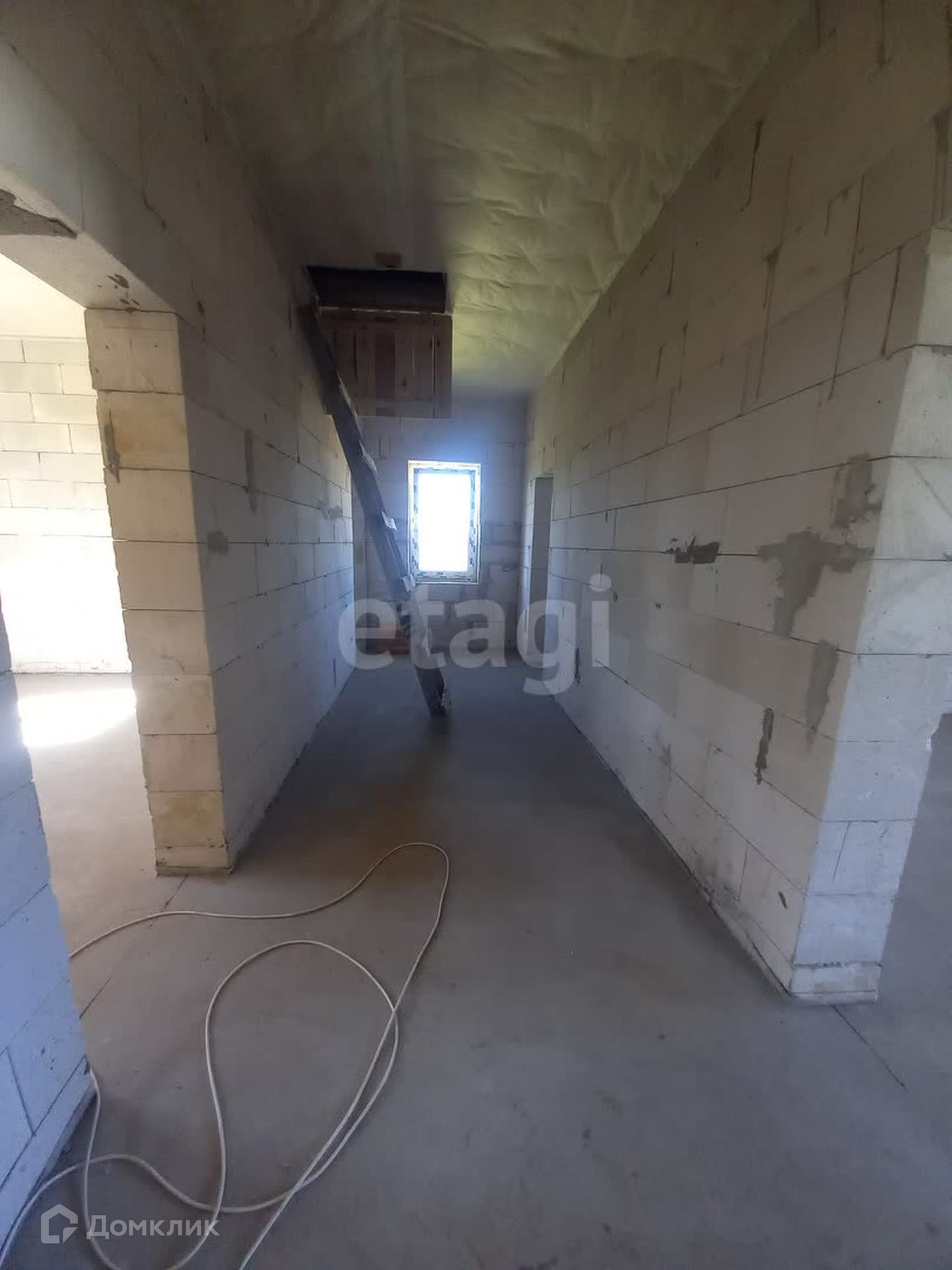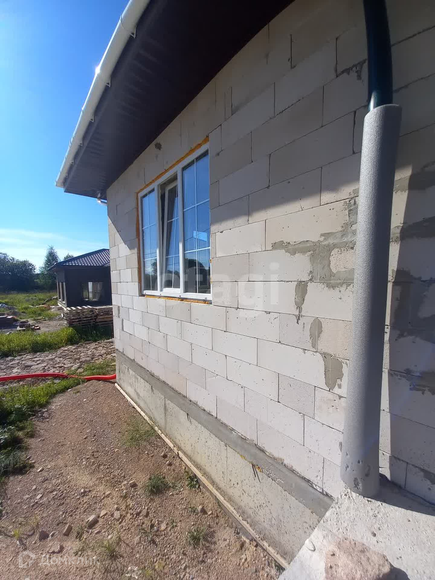 На участке дом площадью 122 кв метра из газобетона.