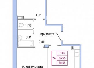 Общая площадь: 58.65 м2