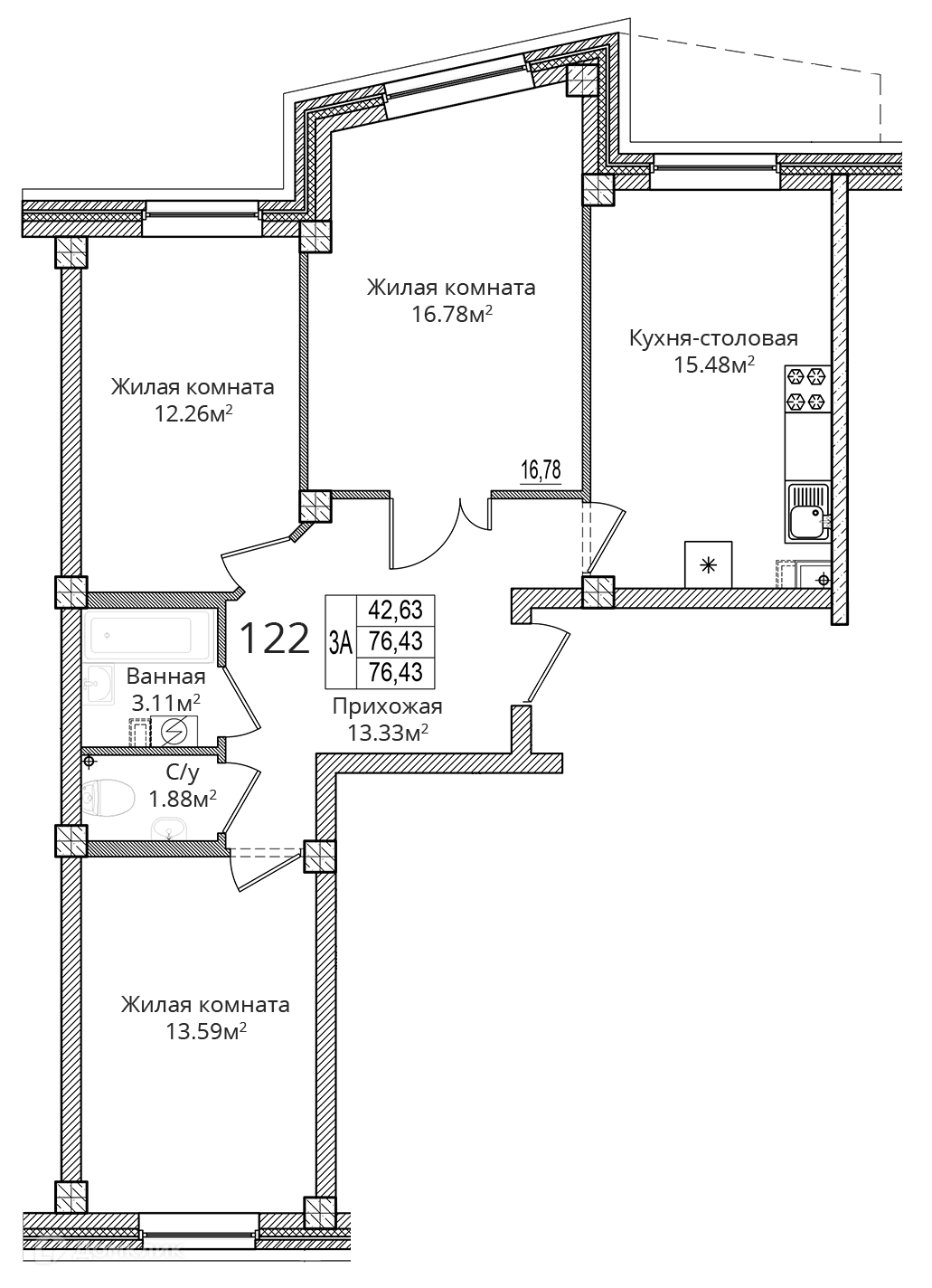 Продается 3-комнатная квартира, 76.43 кв. м, по адресу Россия, Псковская область, Псковский район, д. Борисовичи, ул. Завеличенская, д. 26, 26. Этаж 1/9.