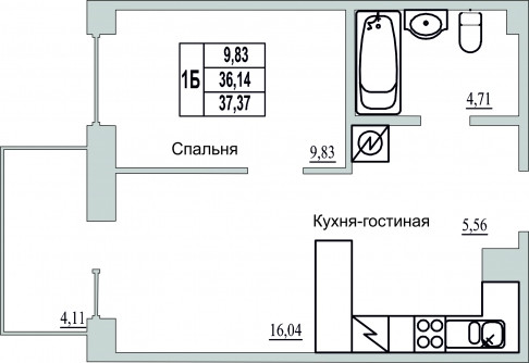 Общая площадь 36.88 м2