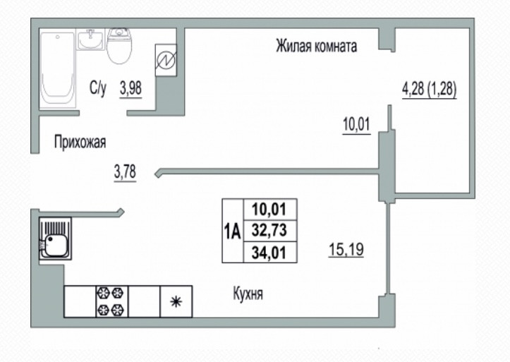Общая площадь 34.1 м2