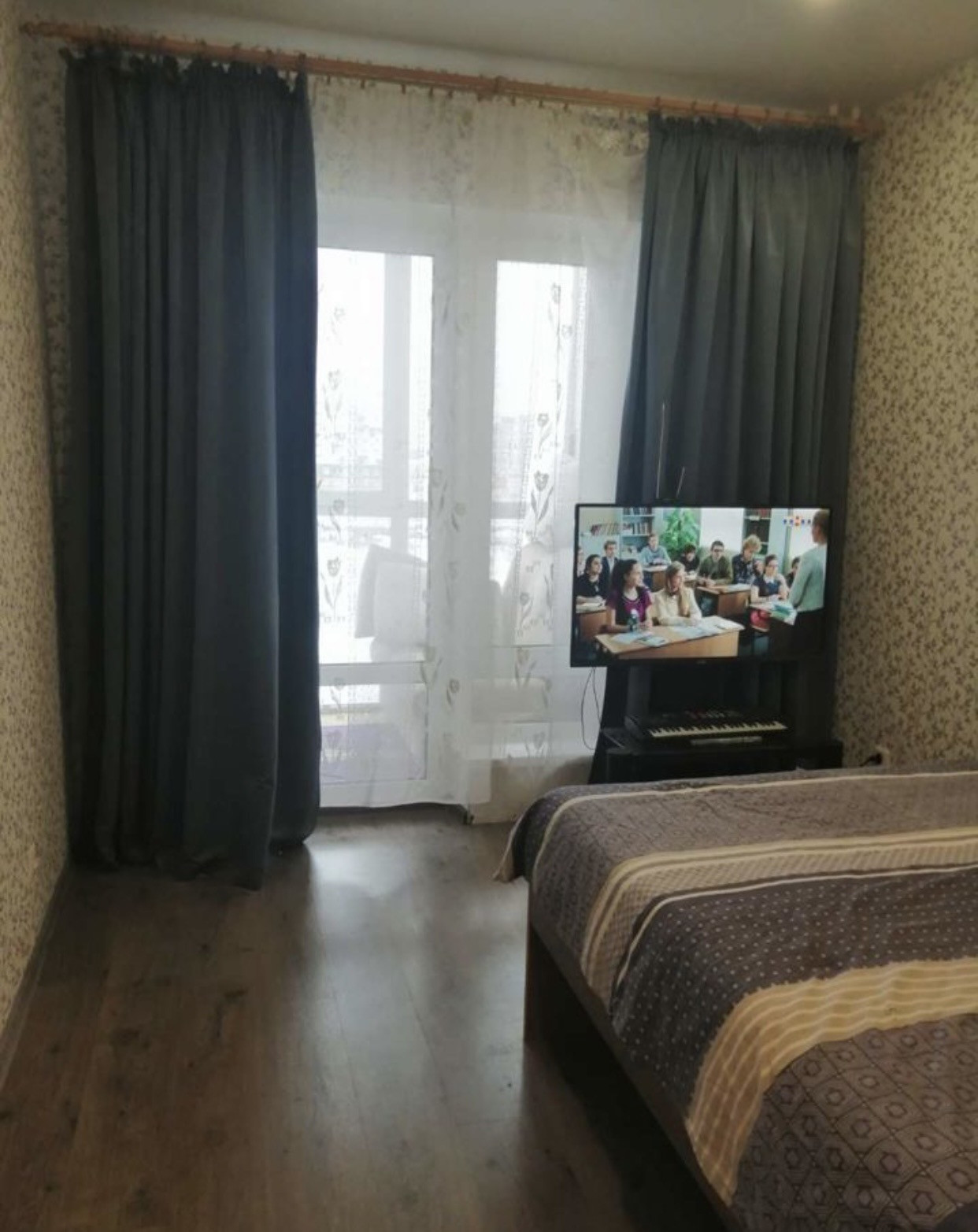 Балкон застеклён и утеплён, при желании можно комнату совместить с балконом-холодно не будет, добавится место!