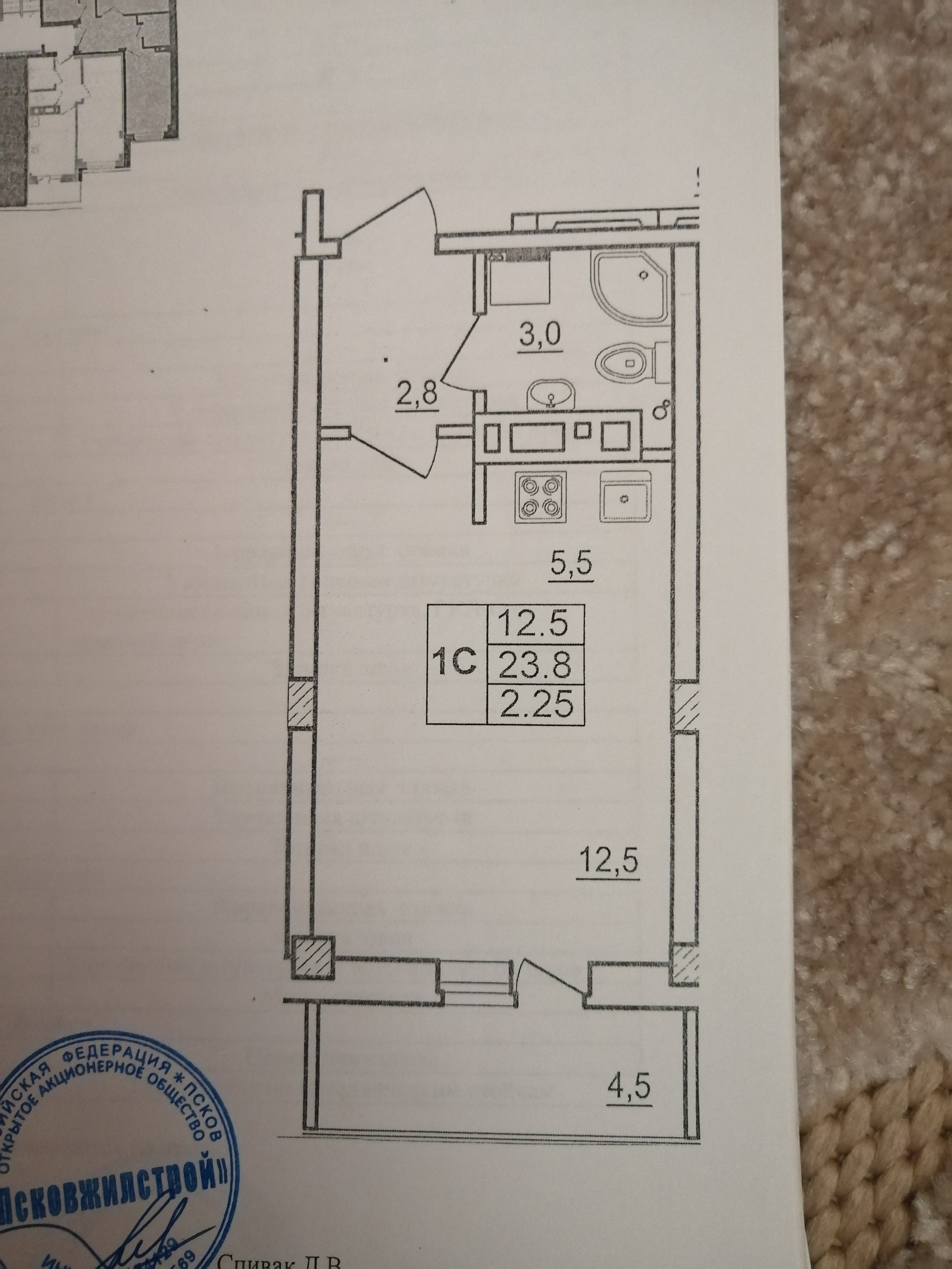 Жилая площадь 23.9 м2