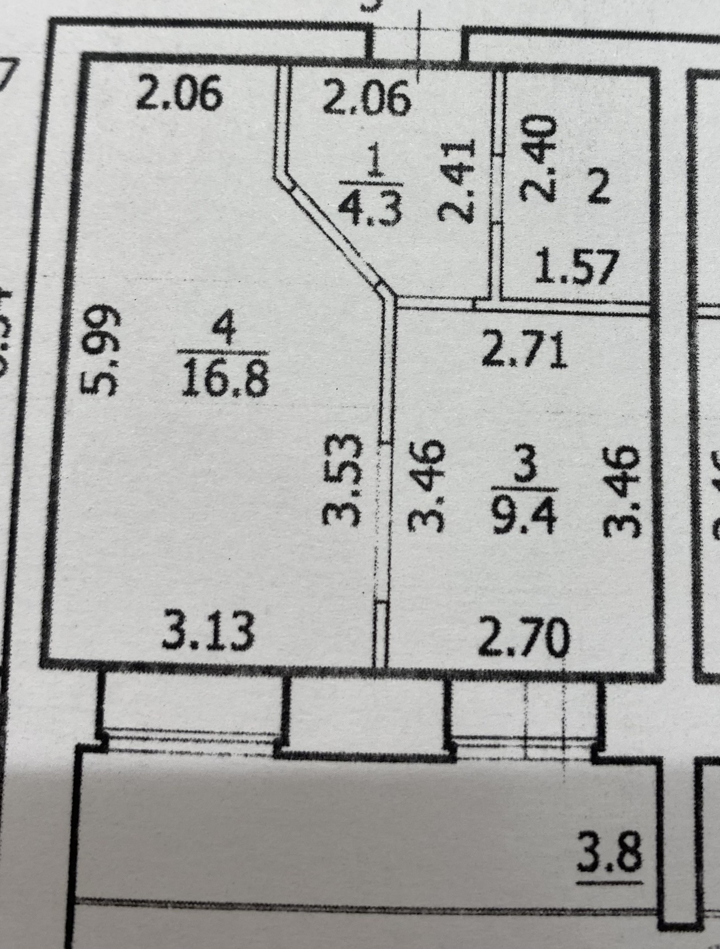 Жилая площадь 16.8 м2