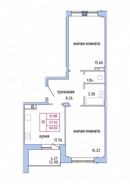 Общая площадь 60.02 м2