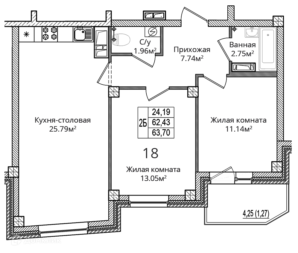 - Высокие потолки в квартирах 2,7 м. «в чистоте»