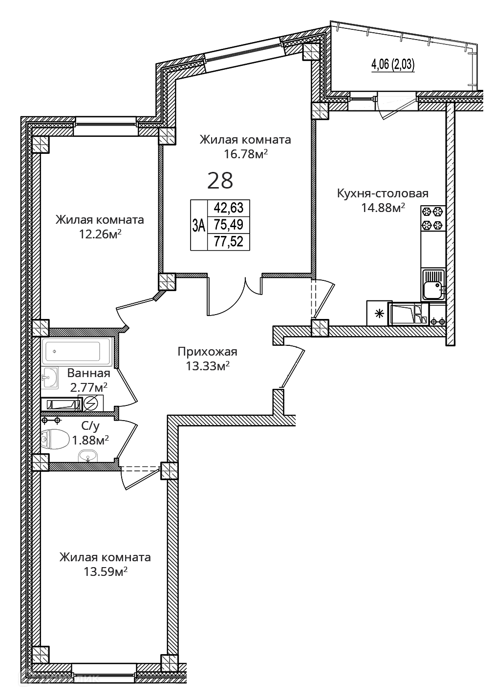 Продается 3-комнатная квартира, 77.52 кв. м, по адресу Россия, Псковская область, Псковский район, д. Борисовичи, ул. Завеличенская, д. 26, 26. Этаж 8/9.