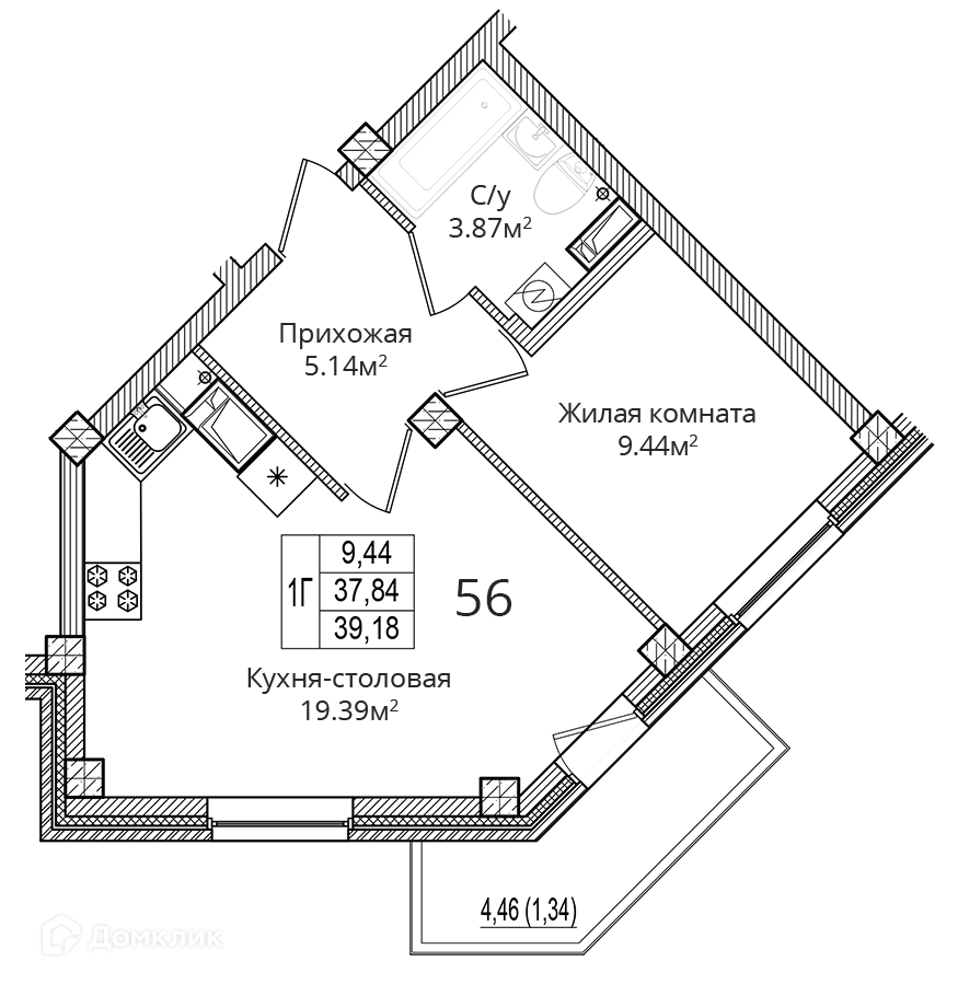 Общая площадь 39.18 м2