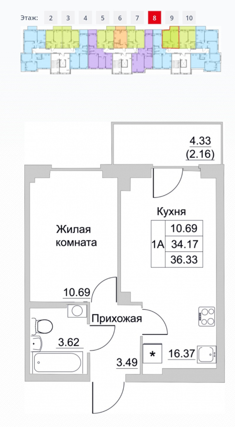 Этаж / Этажность 8 / 10