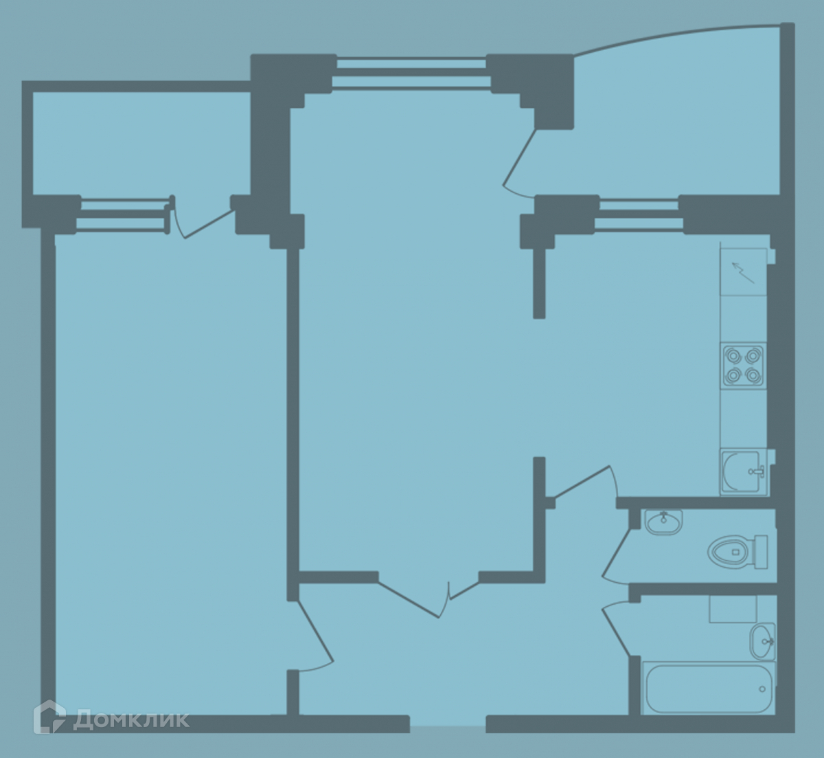 Комнаты и кухня просторные, имеют правильную геометрическую форму удобную для зонирования и обустройства всем необходимым. Планировочное решение от застройщика объединяет зону кухни и гостиной, но также эти помещения могут быть изолированы друг от друга: стеной или дополнительно установленными дверями, каждое из помещений имеет отдельный вход из прихожей.