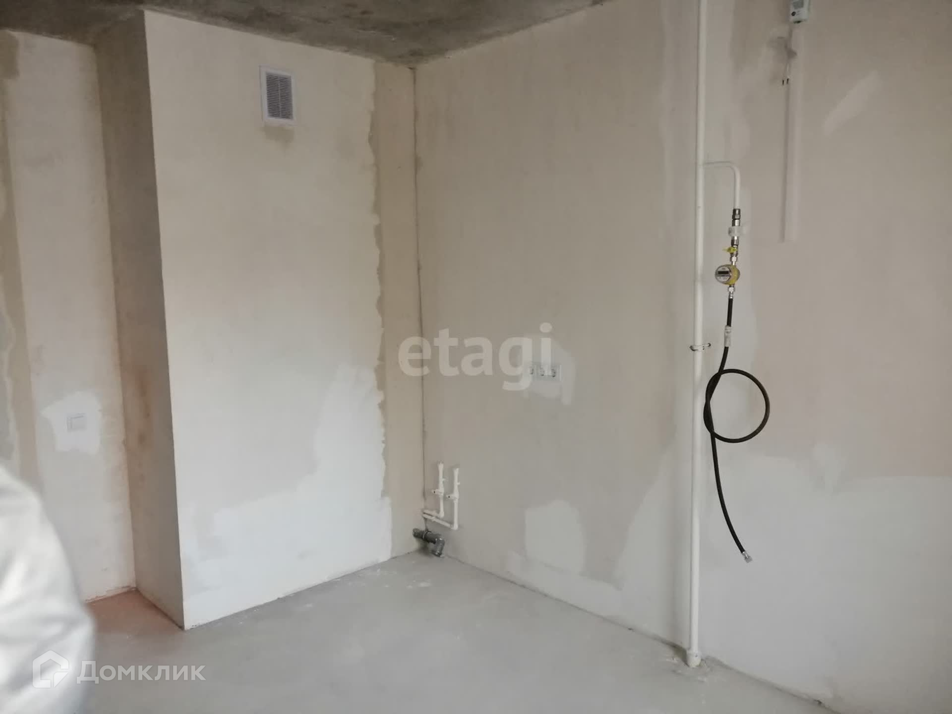 Дом сдается под чистовую отделку (пол - бетонная стяжка, стены - отшпаклеваны, сделаны выводы в санузлах воды и канализации, установлены счетчики, разведена электропроводка). На кухне - вывод газовой трубы с счетчиком.