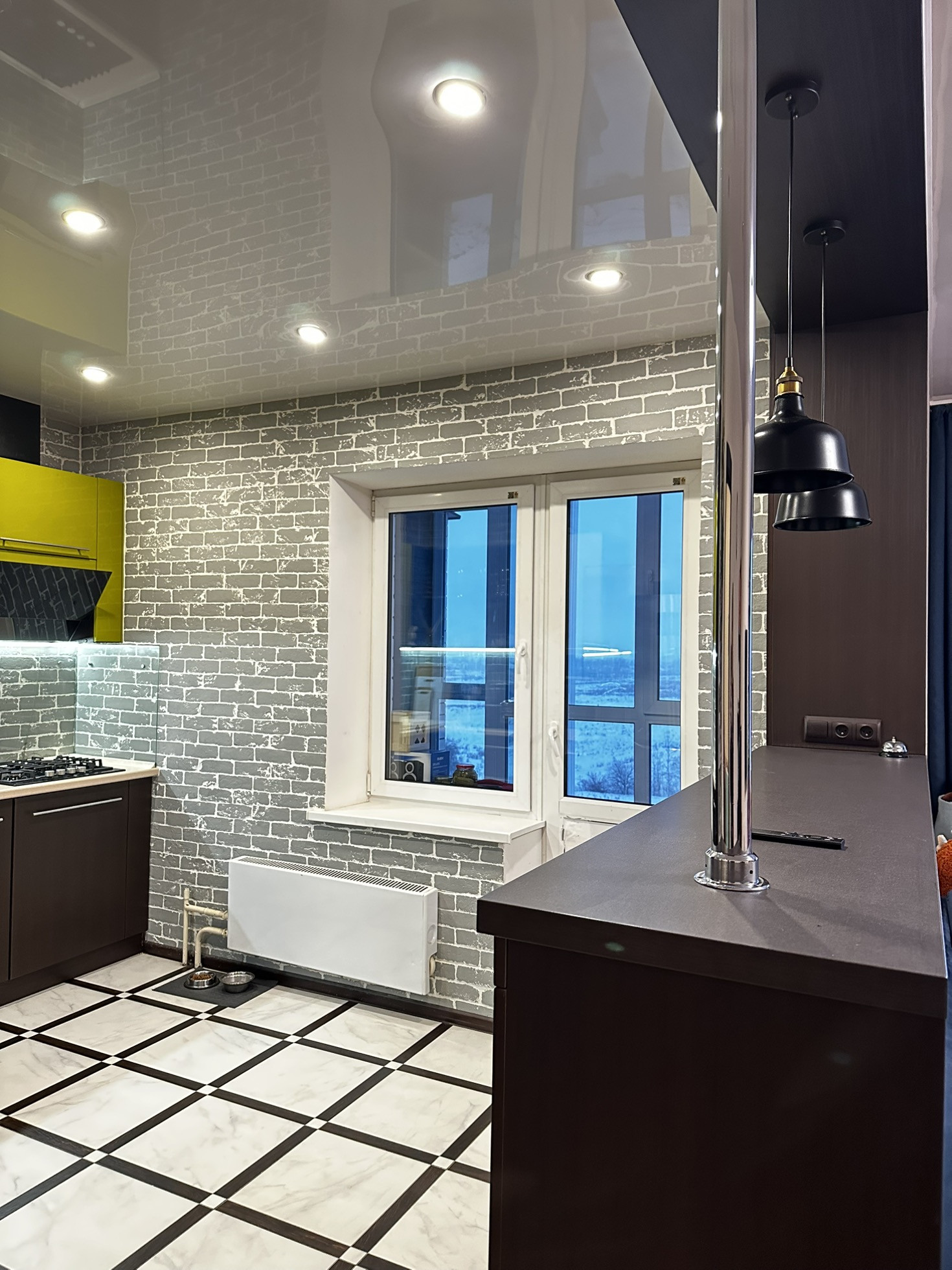 ✨Стены в прихожей и в комнатах - обои, полы - ламинат высокого качества в комнатах, на кухне пол плитка, стены декоративный кирпич, в ванне и туалете плитка!