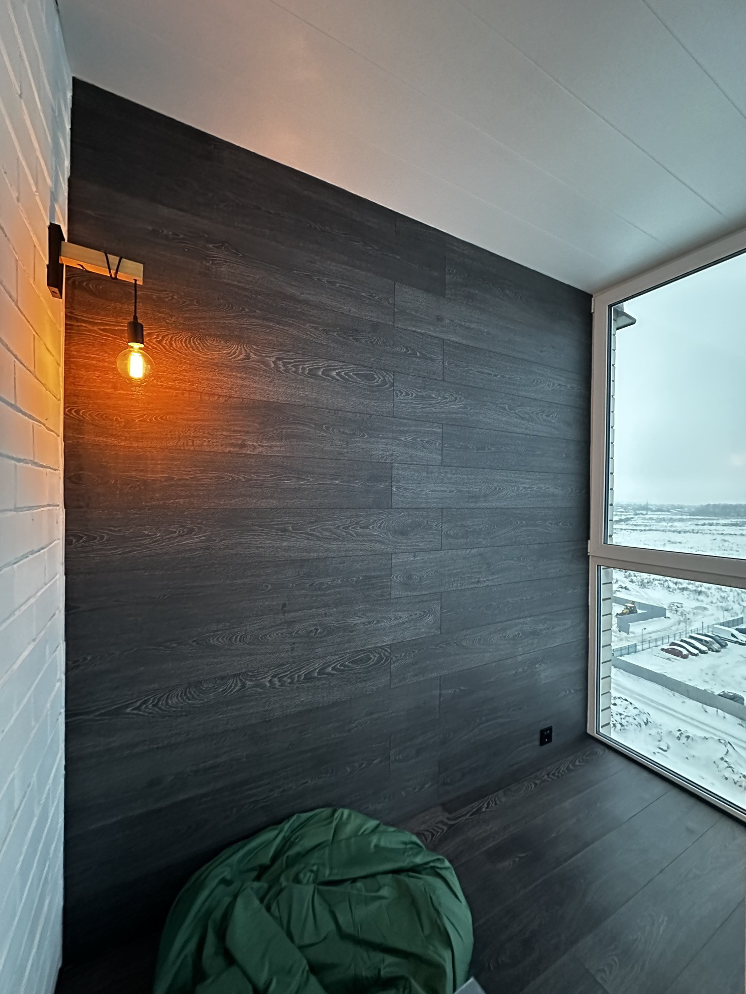 Большой, полностью с отделкой по стенам и полу ламинат, остекление однокамерными стеклопакетами БАЛКОН - 4 м2. Открывается прекрасный вид на памятник А. Невского, просторные поля и ЖК "Балтийская жемчужина".