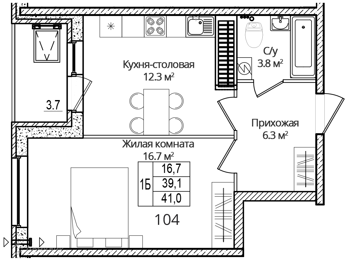 Общая площадь 41 м2