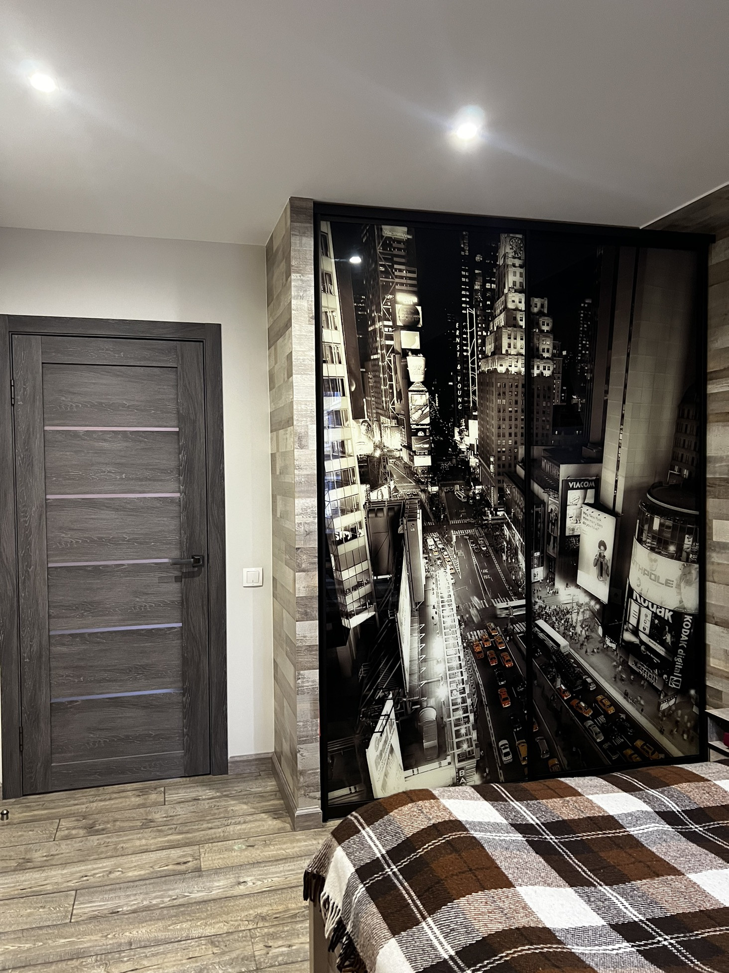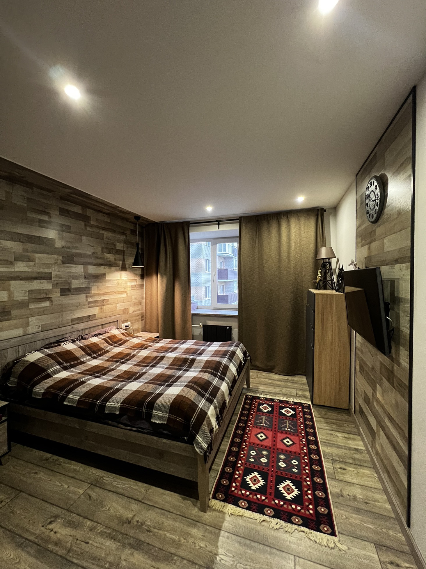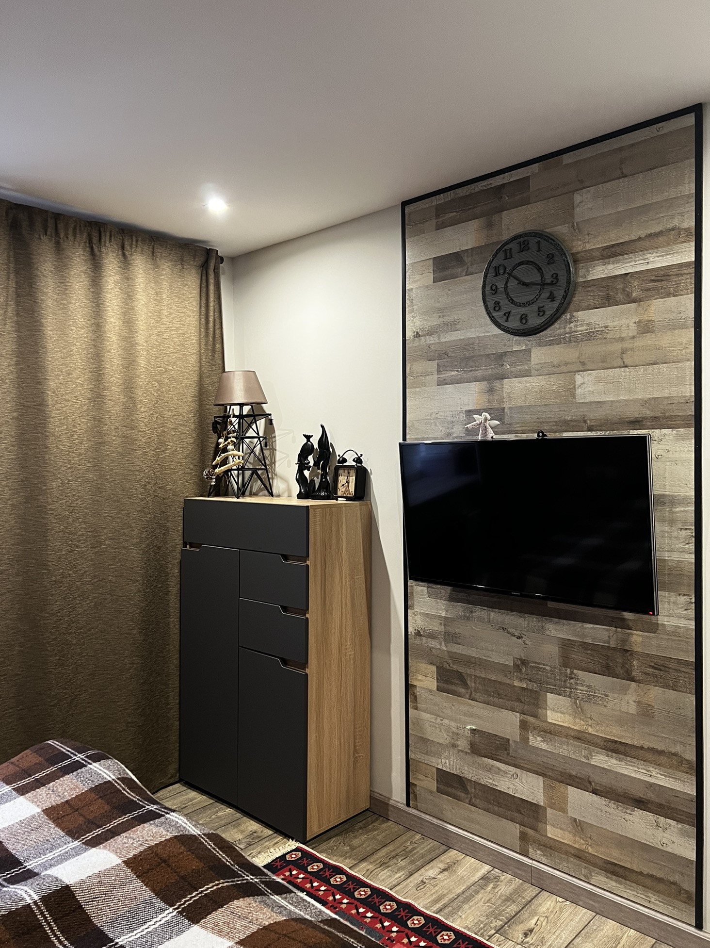- В спальне кровать, тумбы и шкаф