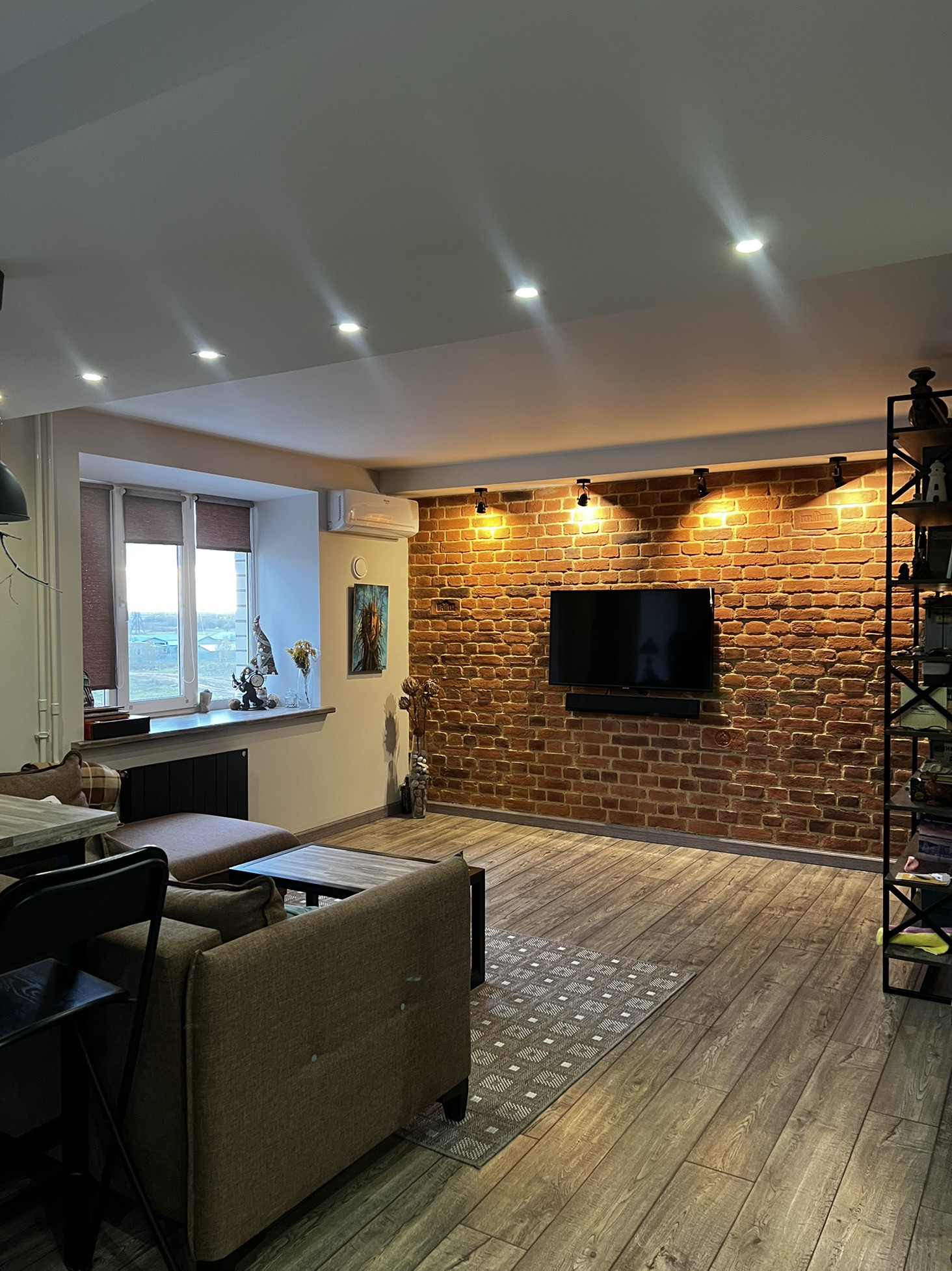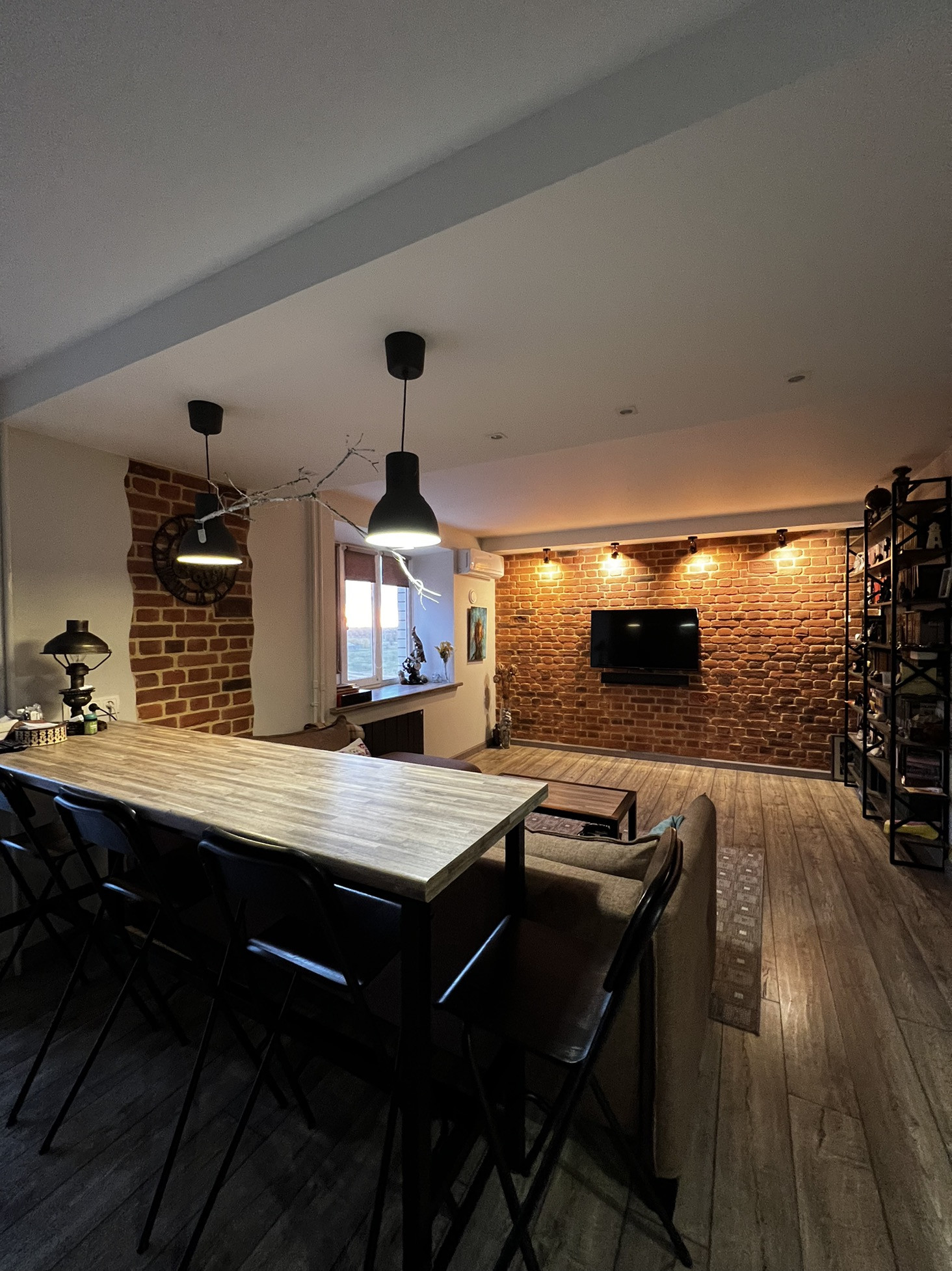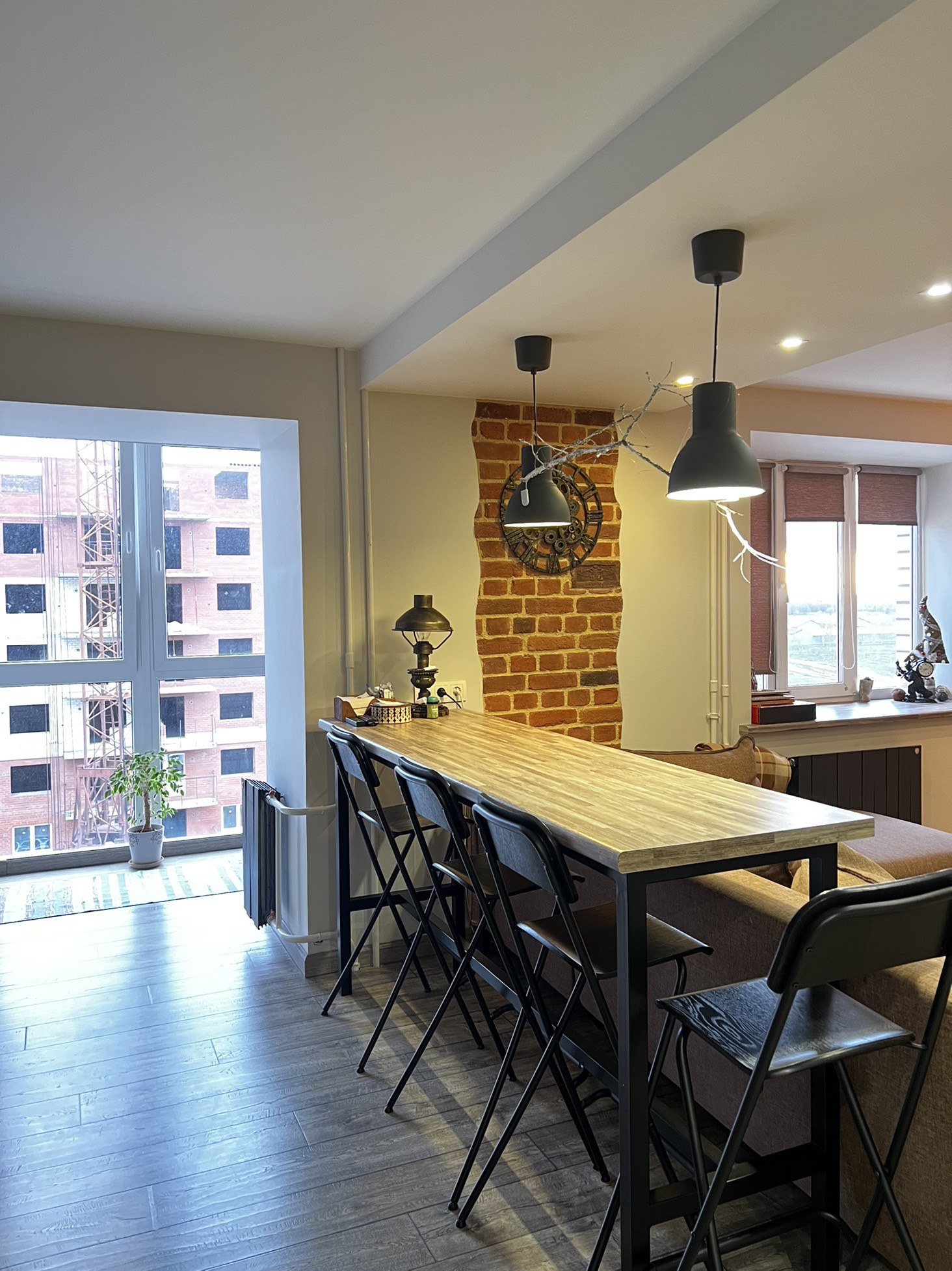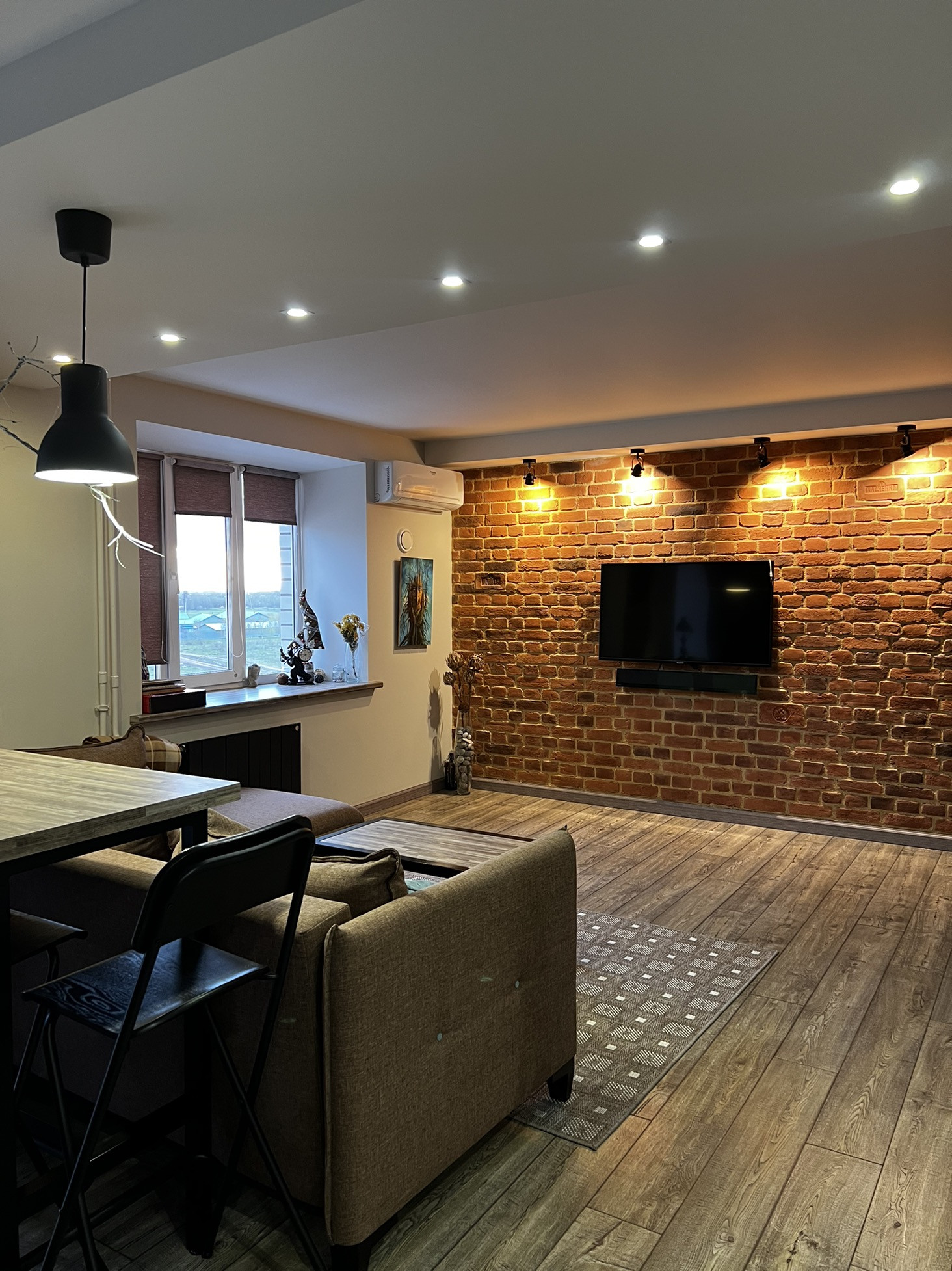 ✨В гостиной барная стойка, журнальный стол ,подоконник - выполнены из одних материалов, что подчеркивает красоту и эстетикe данного пространства!