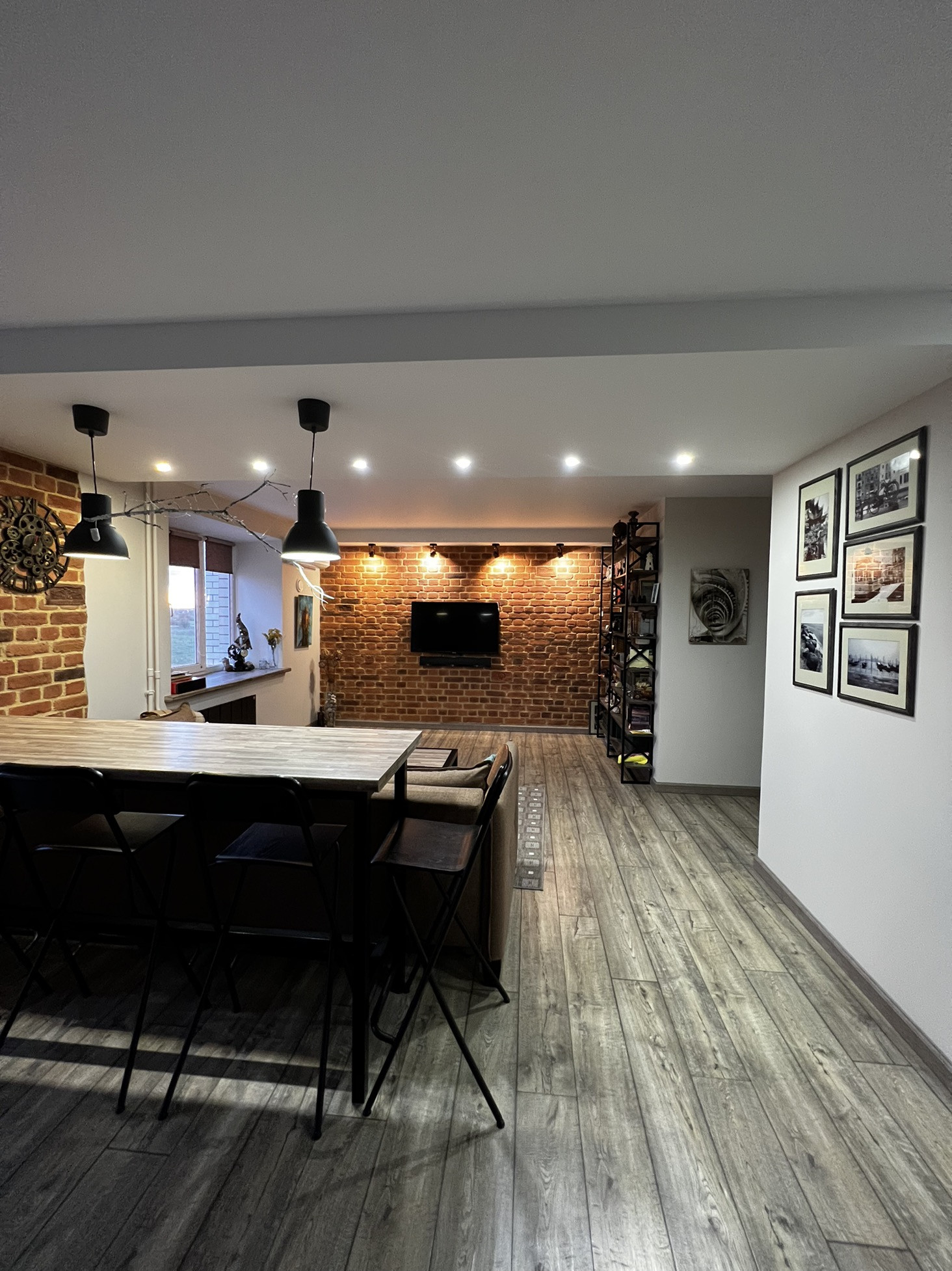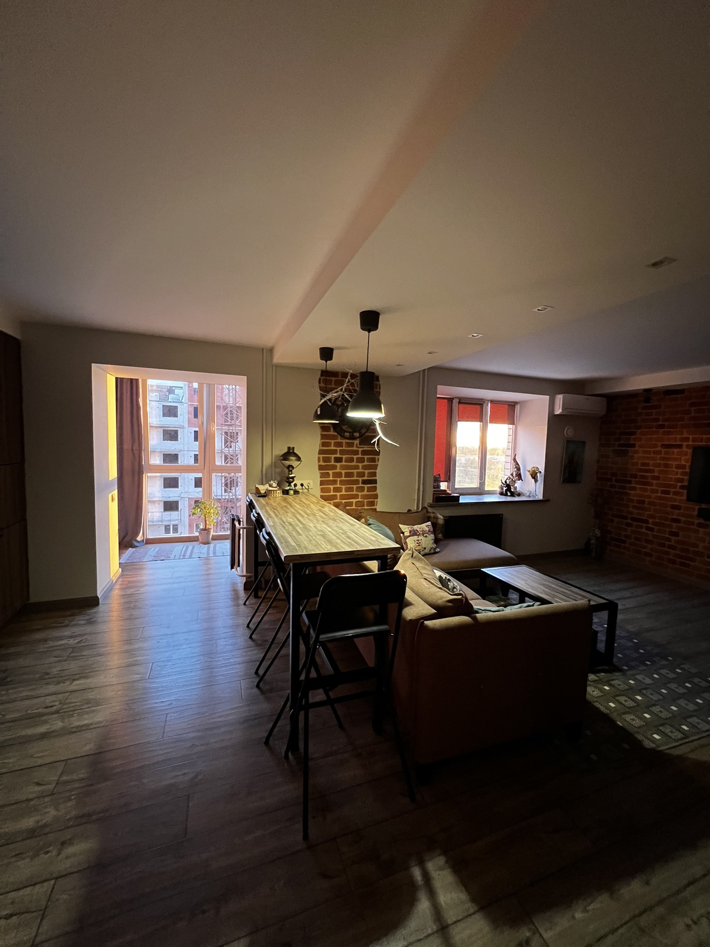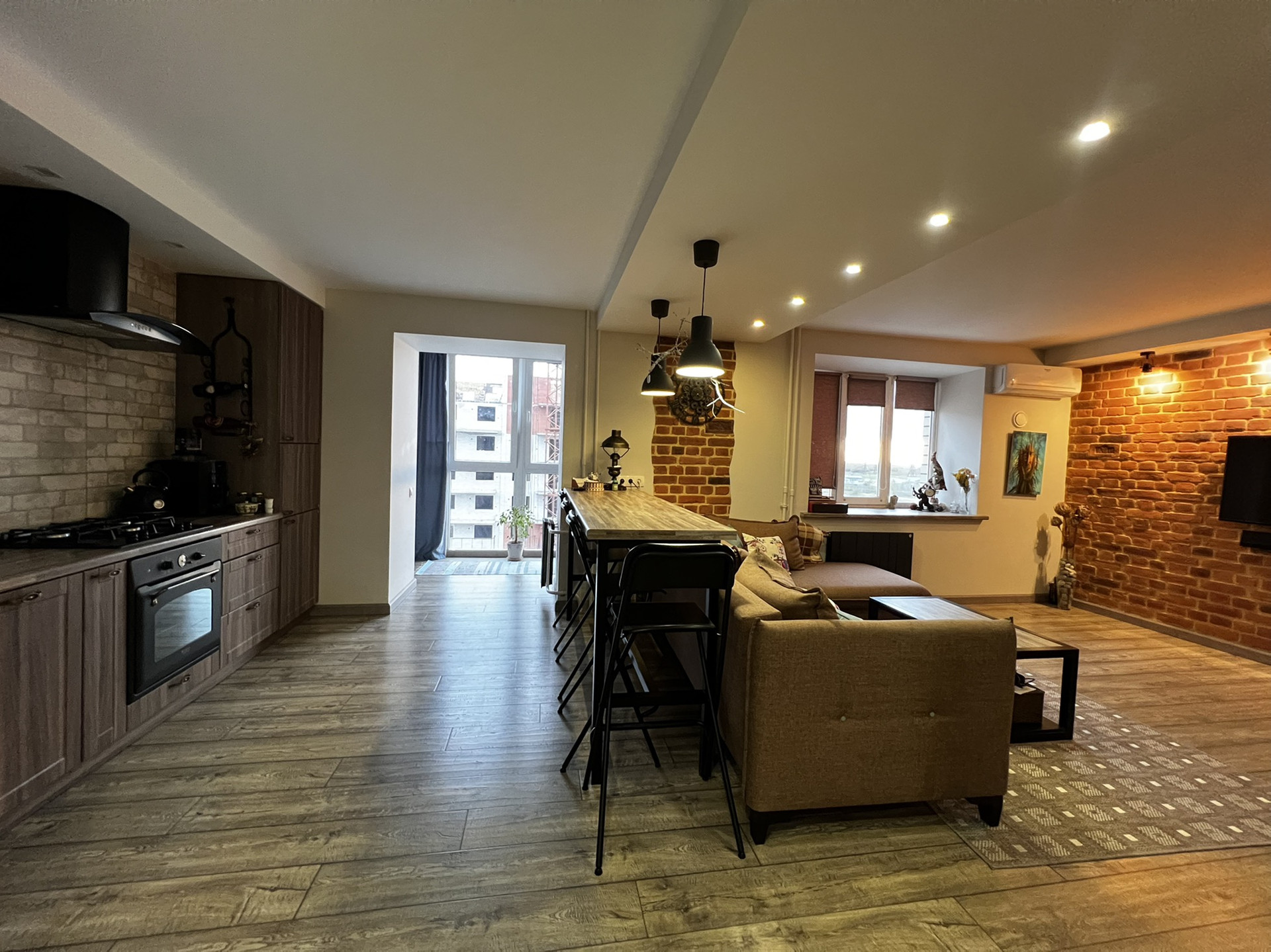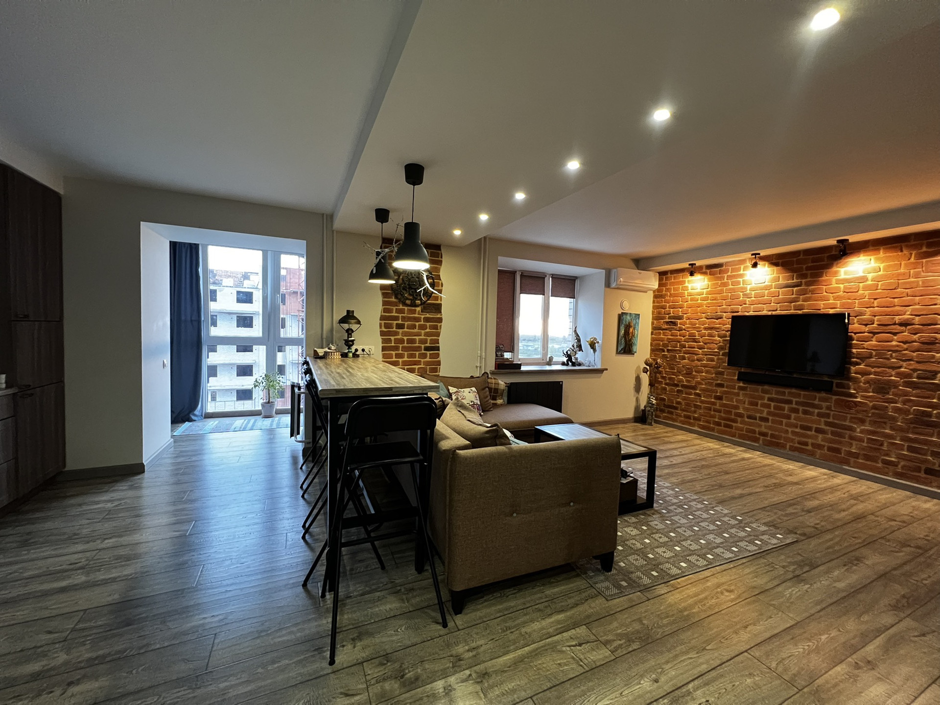 ✨В гостиной барная стойка, журнальный стол ,подоконник - выполнены из одних материалов, что подчеркивает красоту и эстетикe данного пространства!