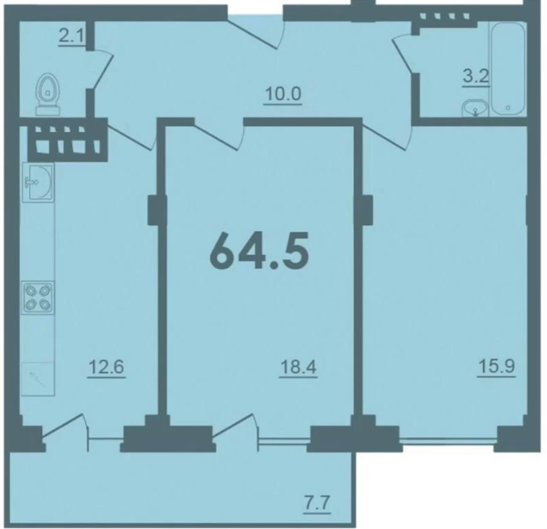 Общая площадь 64.5 м2