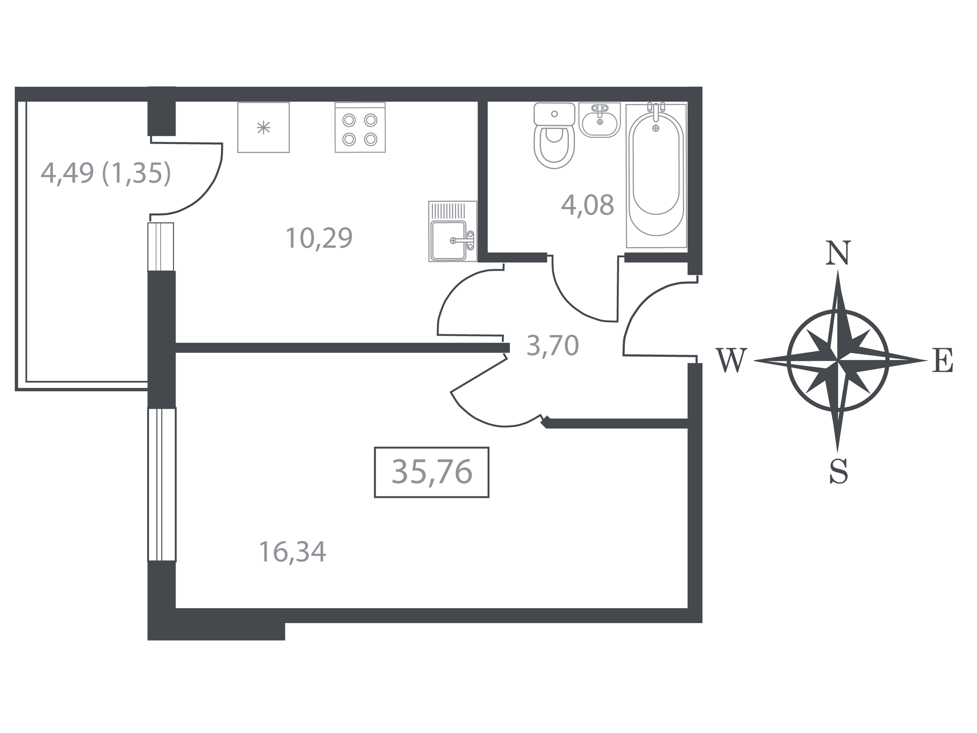 Общая площадь 35.76 м2