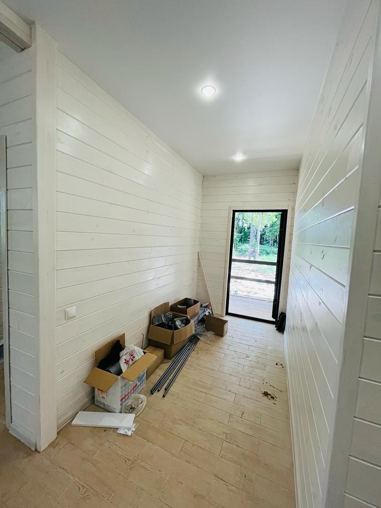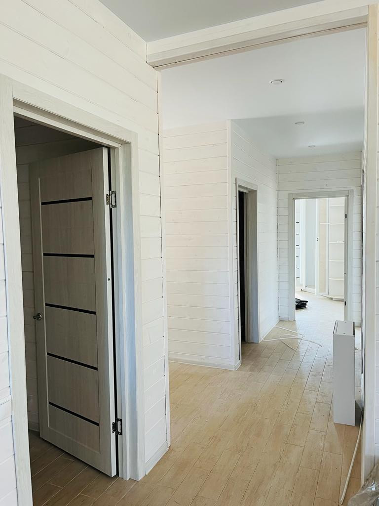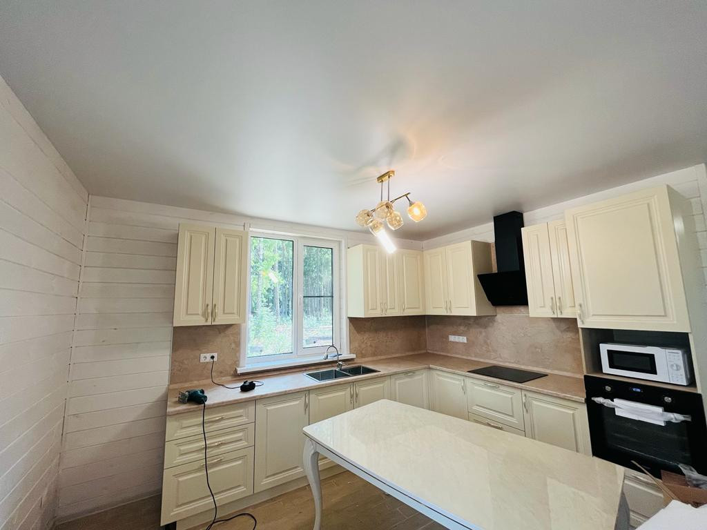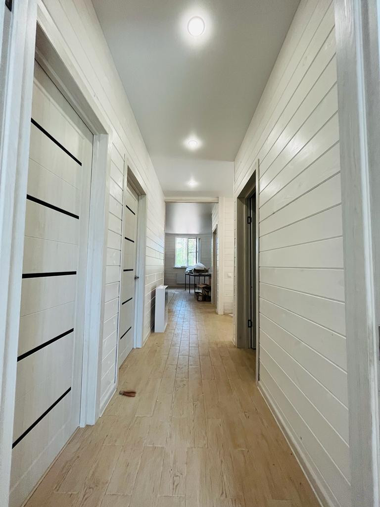 Продается дом в деревне Борисовка. Дом сделан под ключ. 1 этаж. Готов к проживанию. Площадь дома 108 м2, площадь летней веранды 18 м2. Фундамент свайно-винтовой, стены - сосновая доска с двух сторон, в середине утеплитель 20 см. Электричество 15 кВт. Септик. Вода - скважина. В доме 3 спальни по 12 м2, кухня - гостиная 29 м2, прихожая, 2 санузла. Земля 12 соток. Оперативный показ. Звоните.