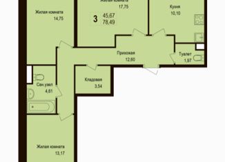 Трехкомнатная квартира на продажу, 78.5 м2, жилой квартал Новая Щербинка, к13