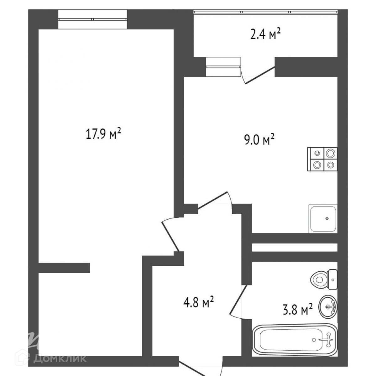 Жилая площадь 17.9 м2