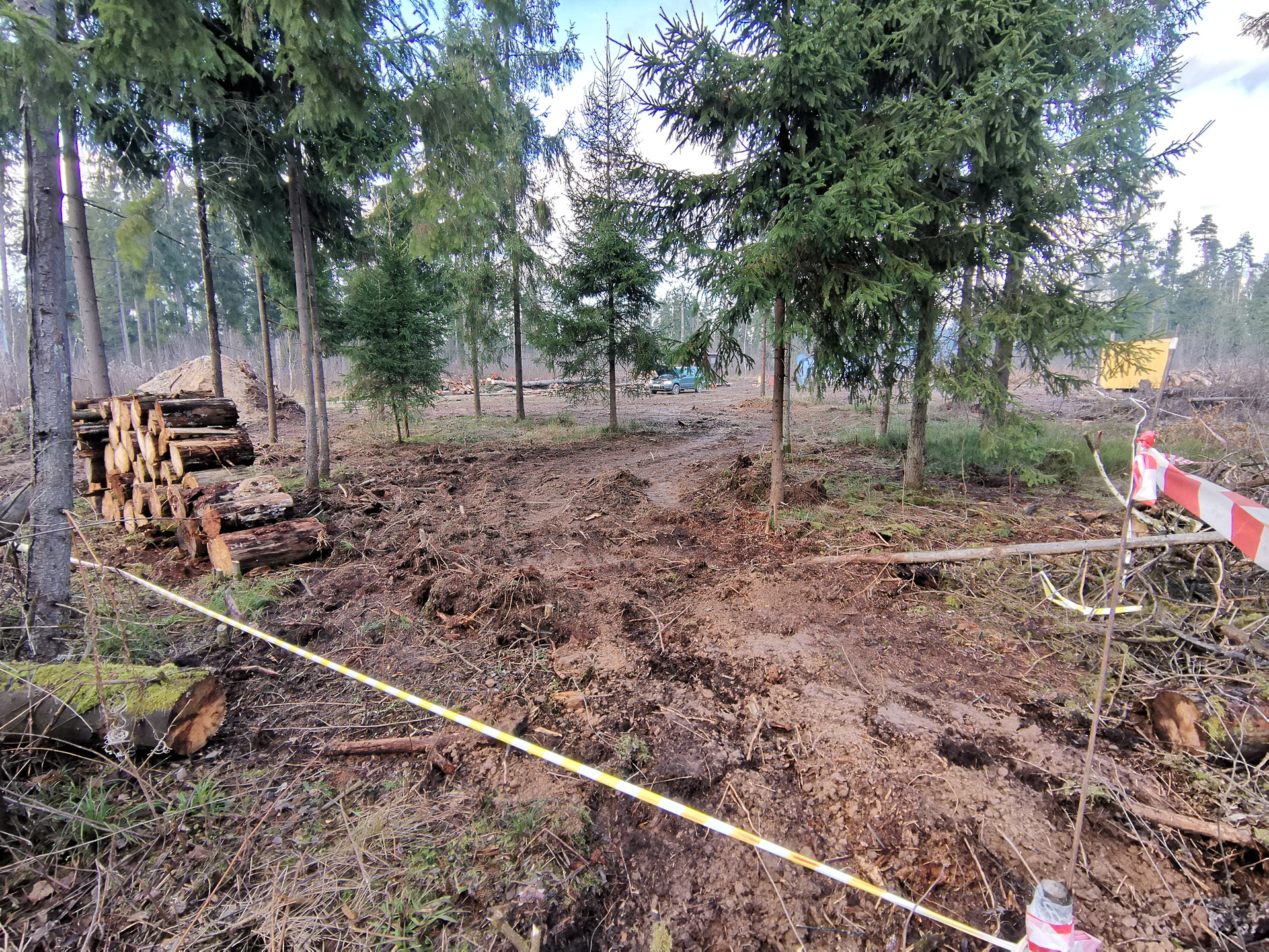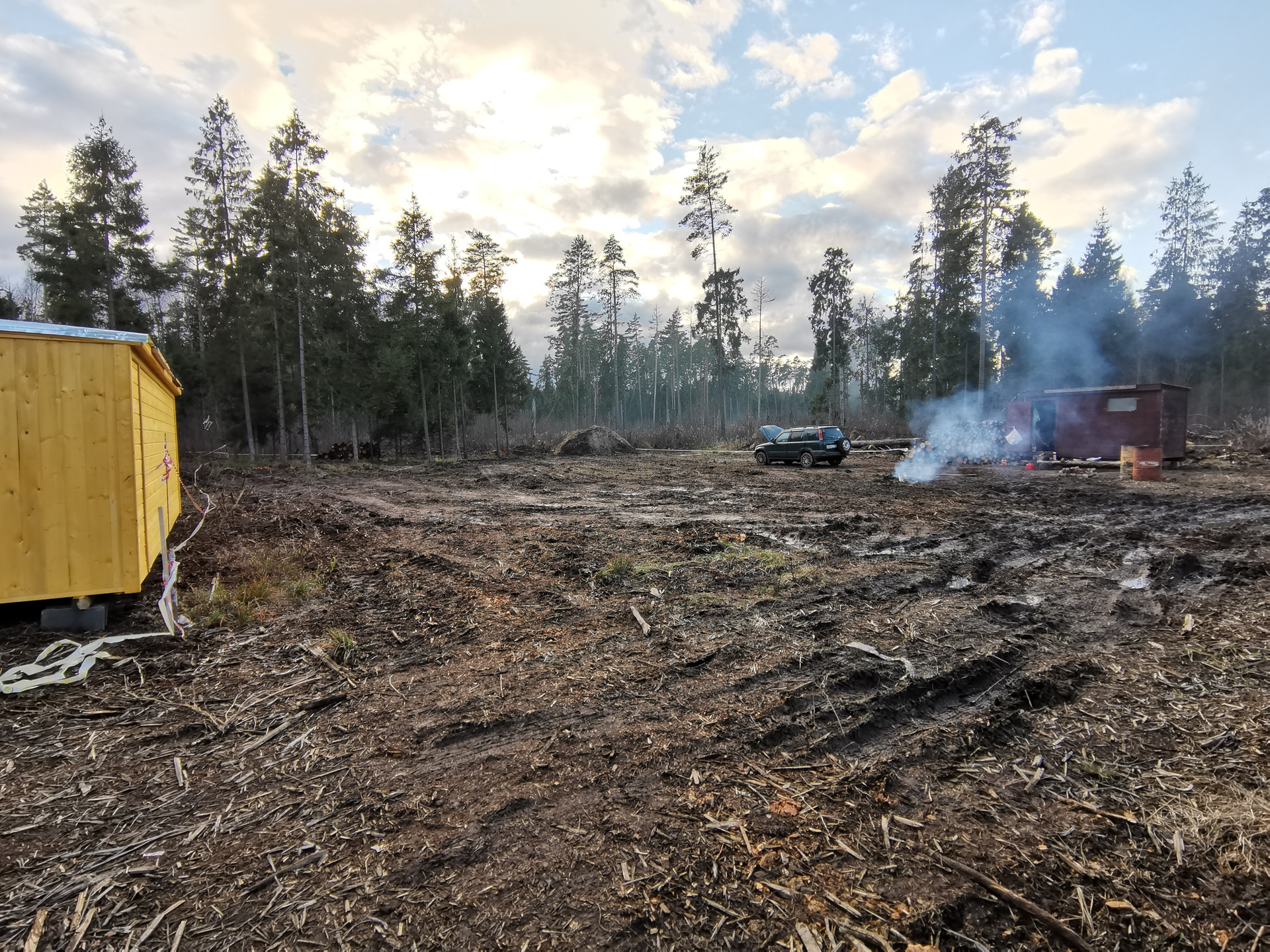 Участок расчищен от пней и другой ненужной растительности. (Границы участка уже обозначены) Есть все необходимые документы. Началась установка столбов с электричеством.
