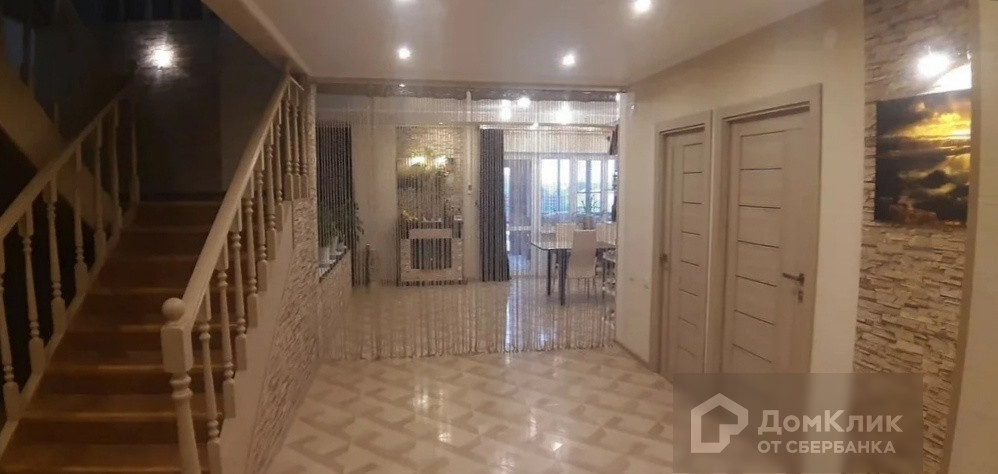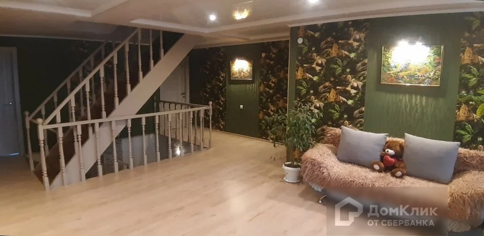 Внутренняя отделка из качественных, дорогих материалов. На полу – ламинат. Стены - шелкография и жидкие обои; потолки – натяжные и навесные. Всё продумано до мелочей, даже ступеньки с отдельным входом для любимого кота.