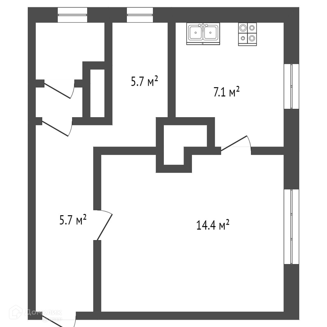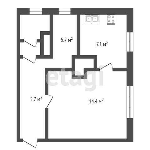 Общая площадь 34.9 м2