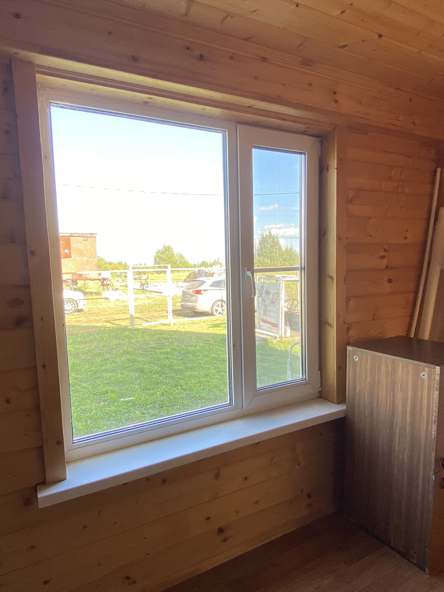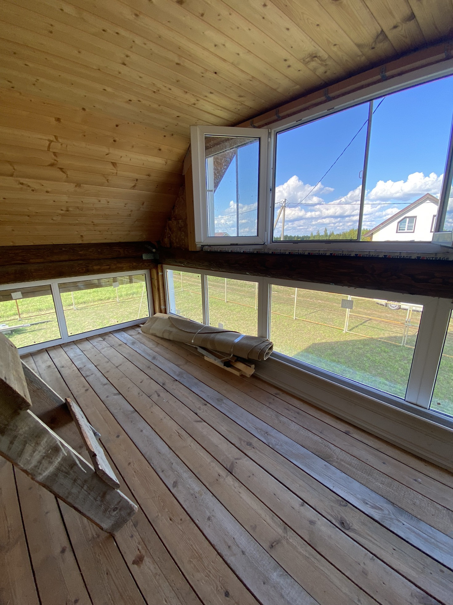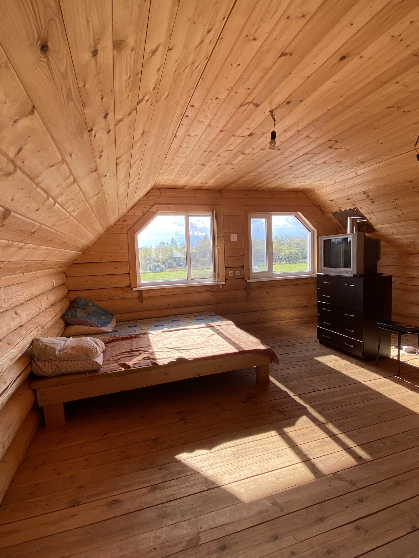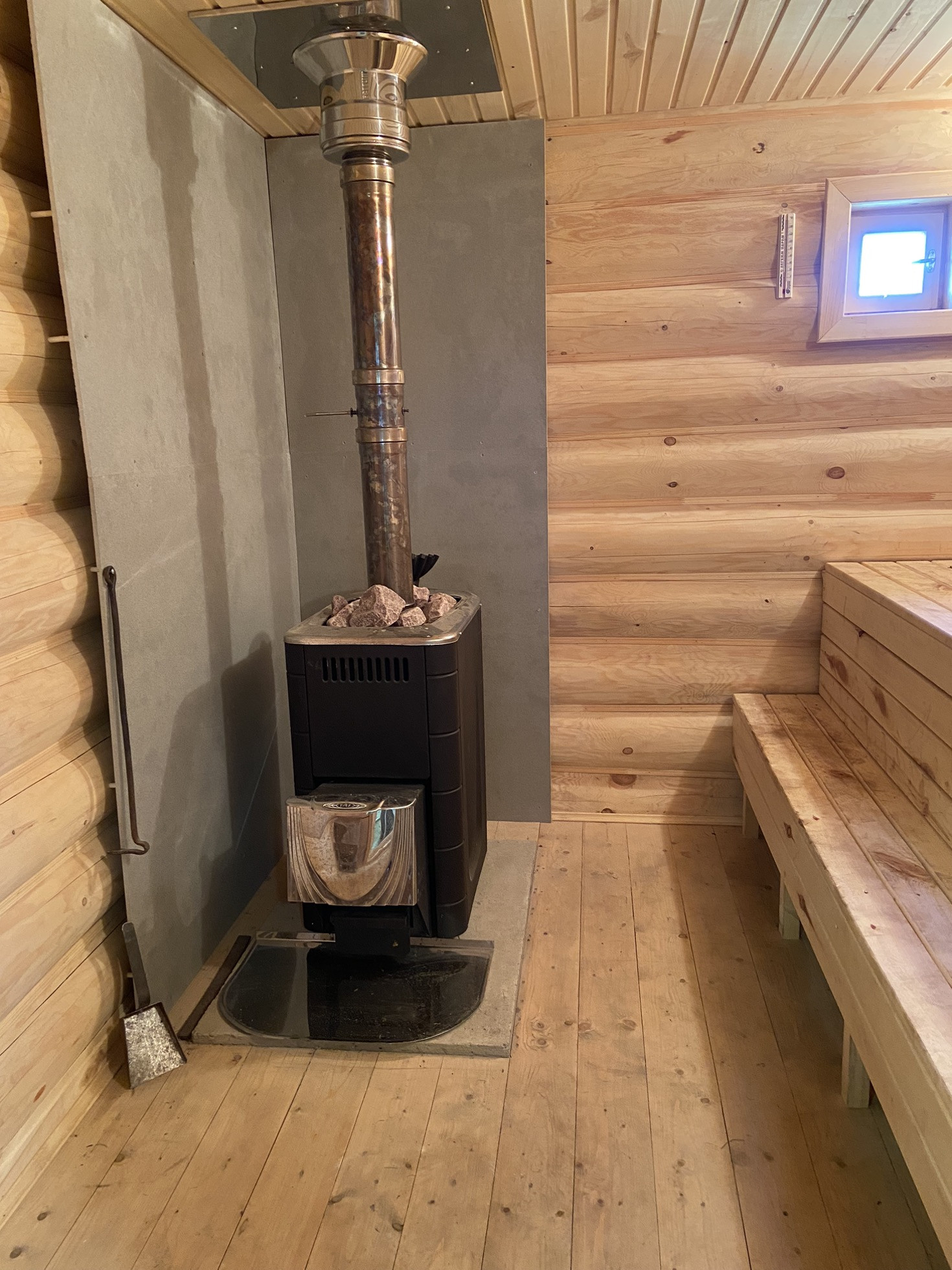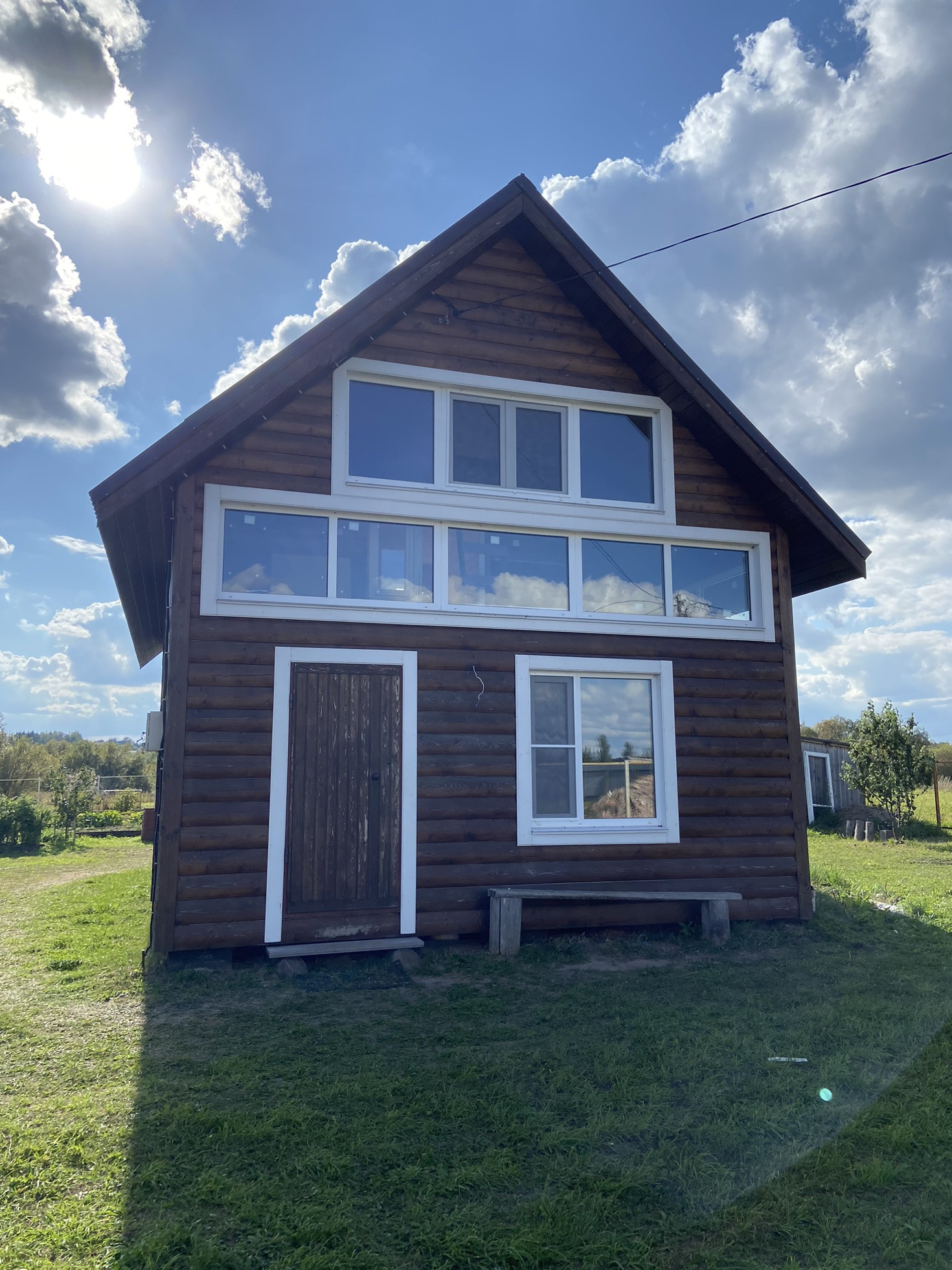Дом обшит блокхаусом, а внутри имитацией бруса. Окна пластиковые. Газ баллонный.