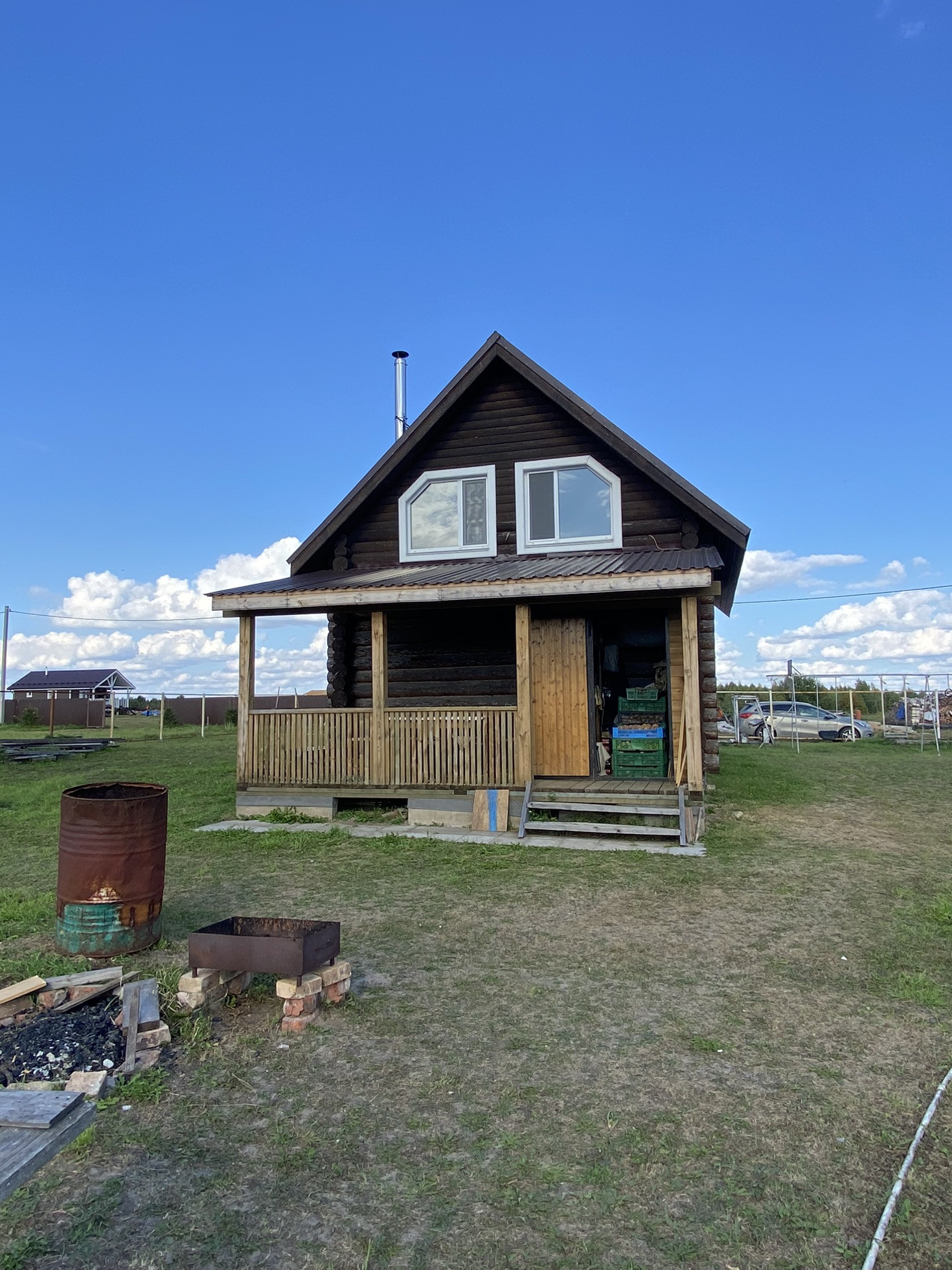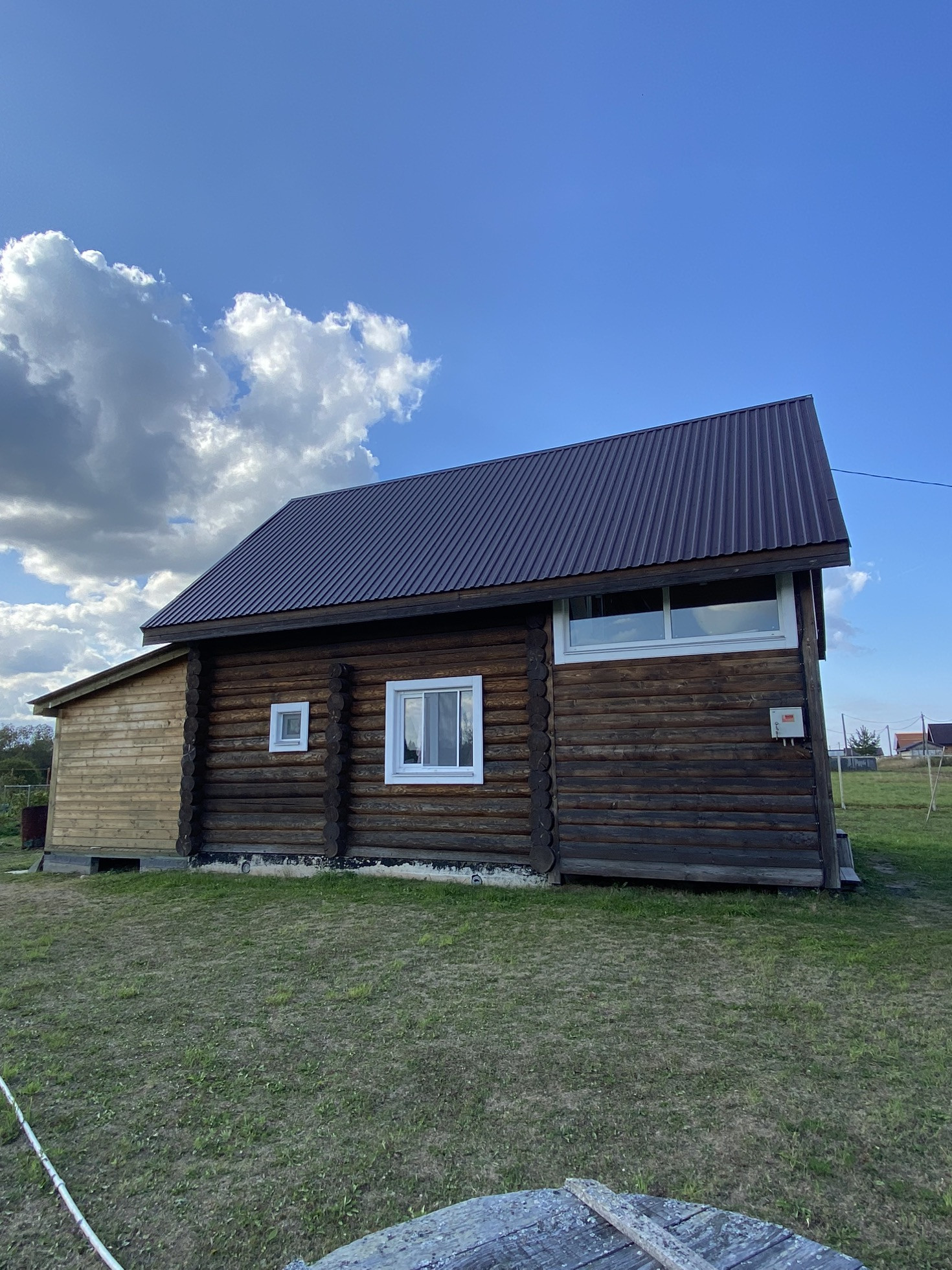Дом-баня построен из качественного зимнего леса для себя.Бревно 26 ручной обработки. Фундамент ленточный, 6*6 сруб+вынос 6*3+веранда с бойлерной 6*3.