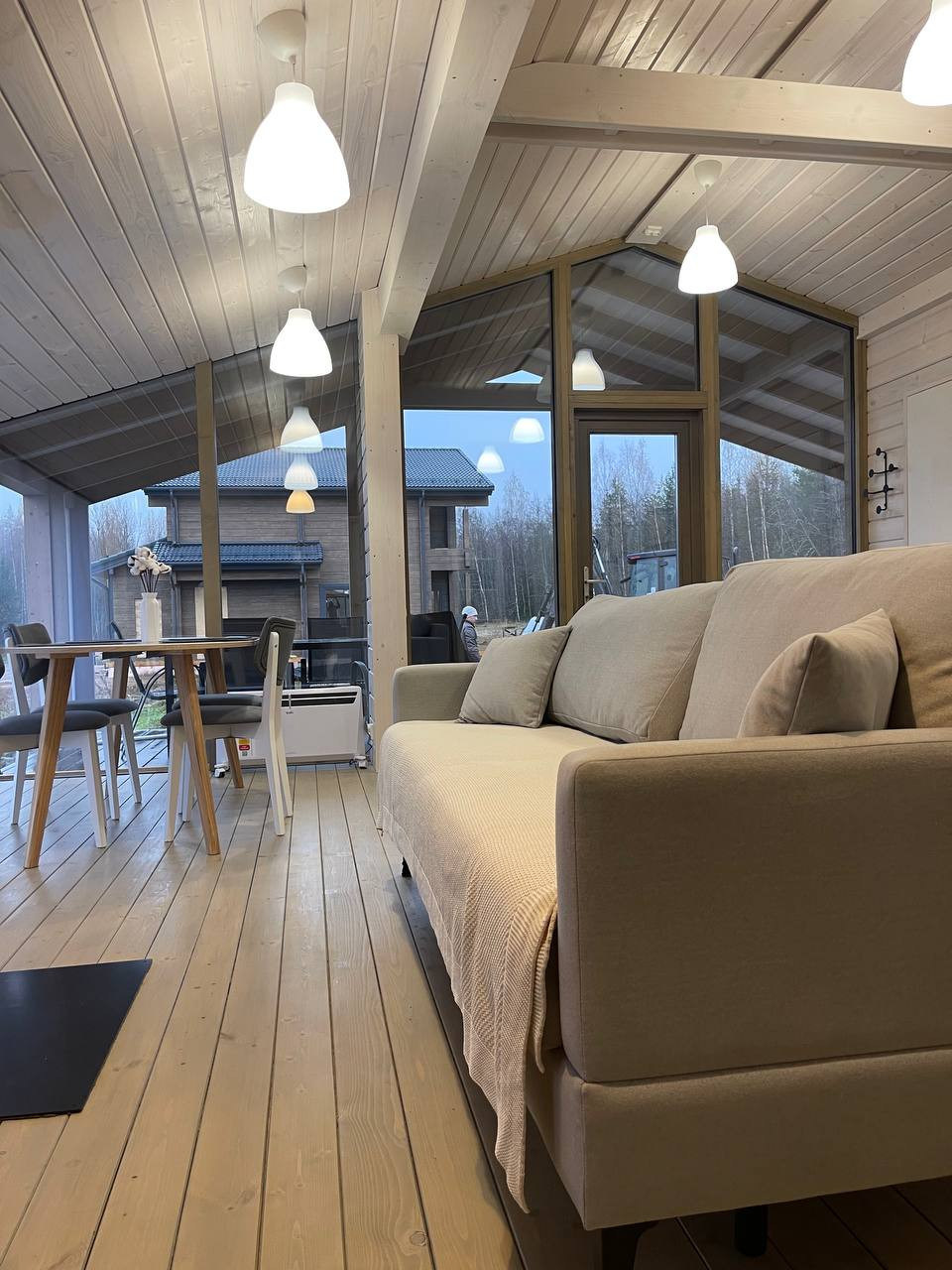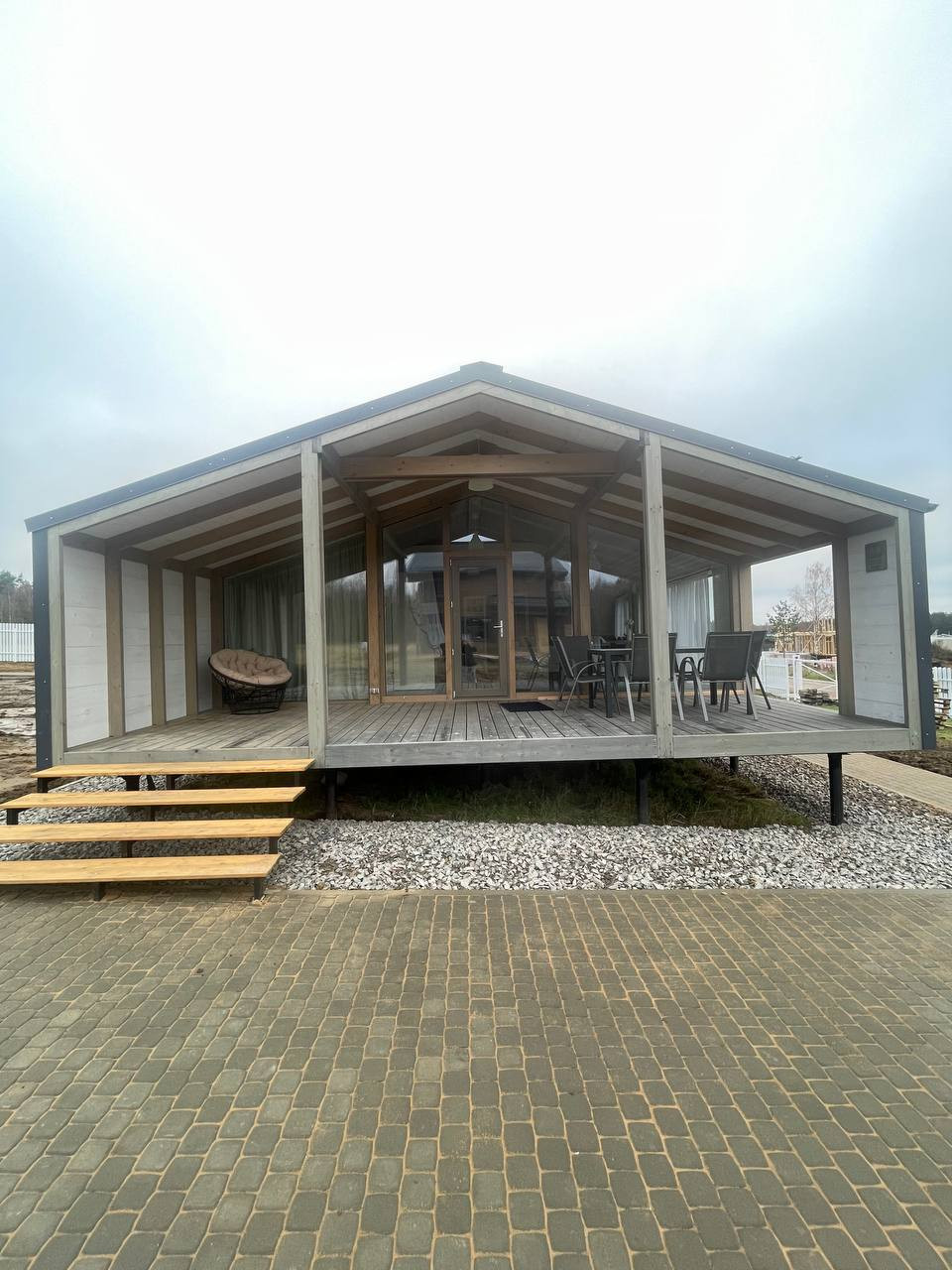 - Большое панорамное остекление, придающее дому уникальный характер и создающее ощущение единения с природой.