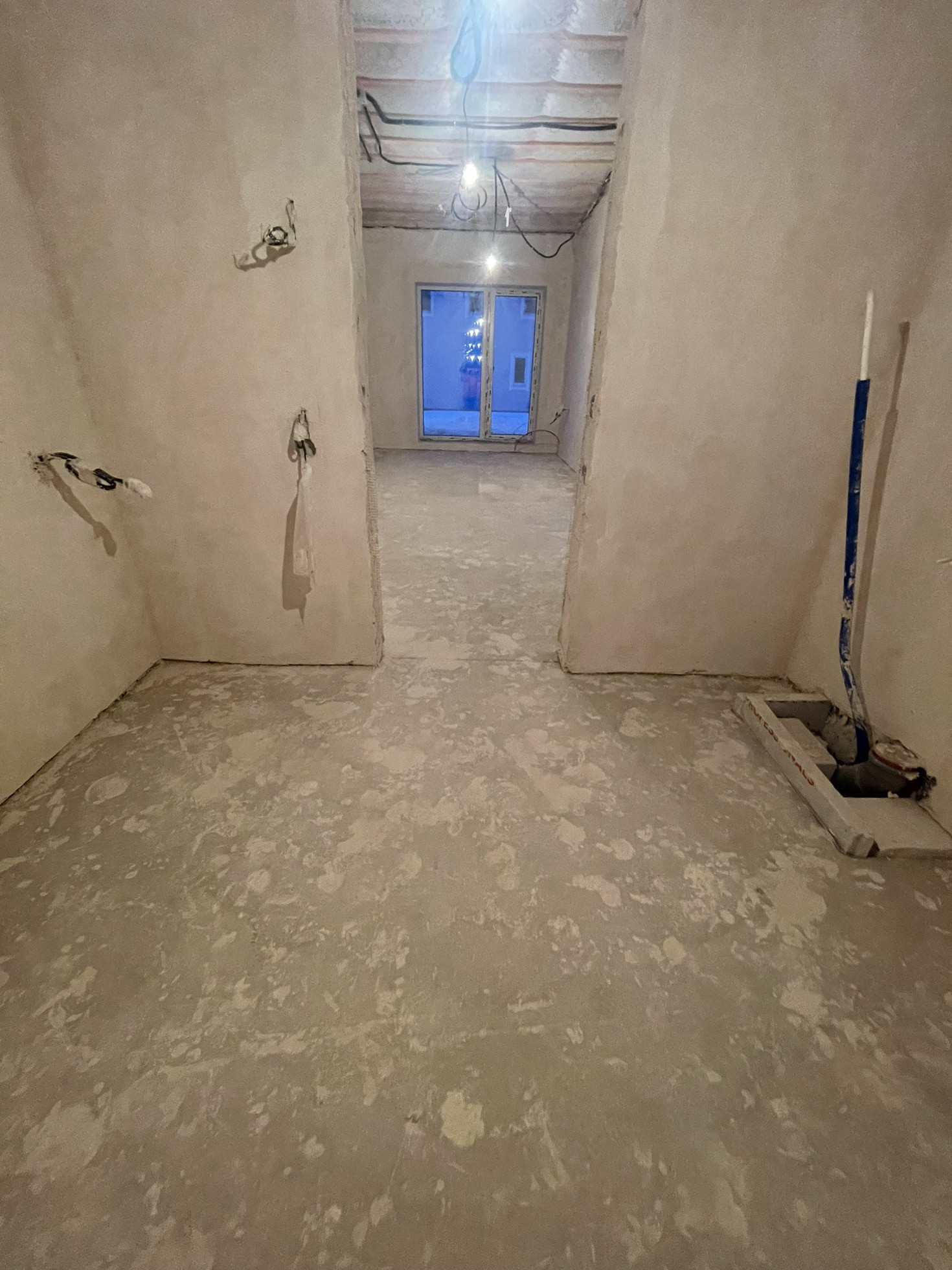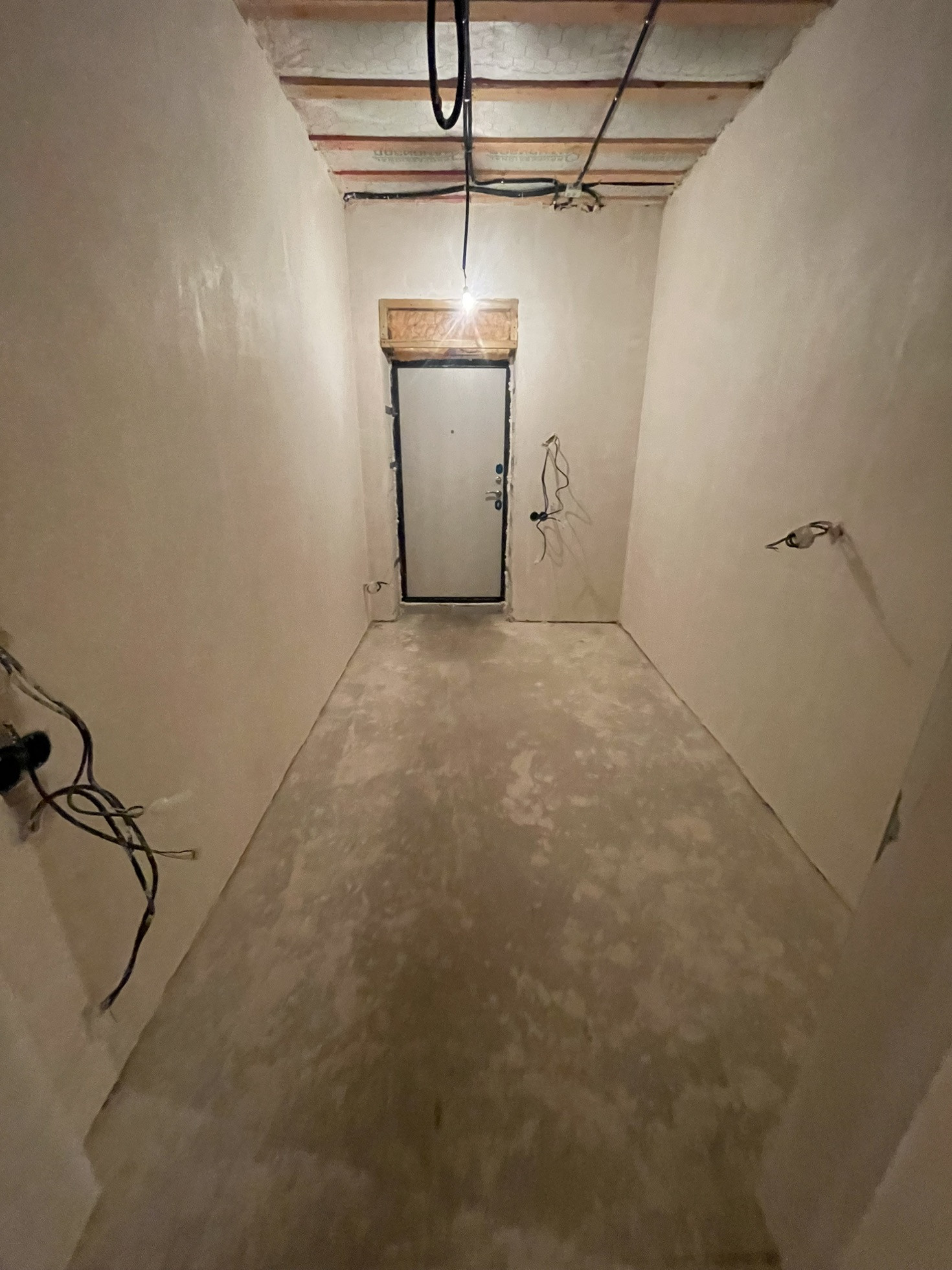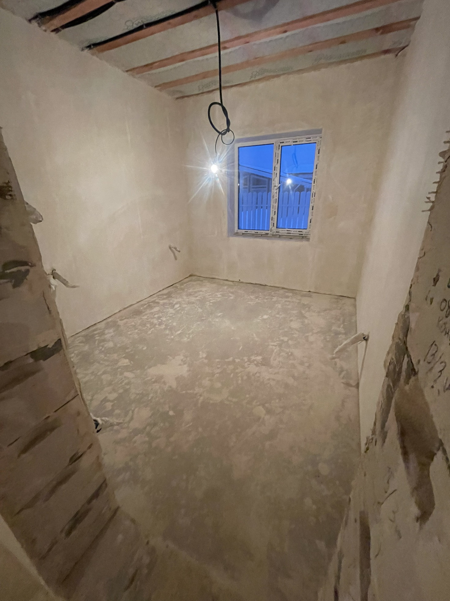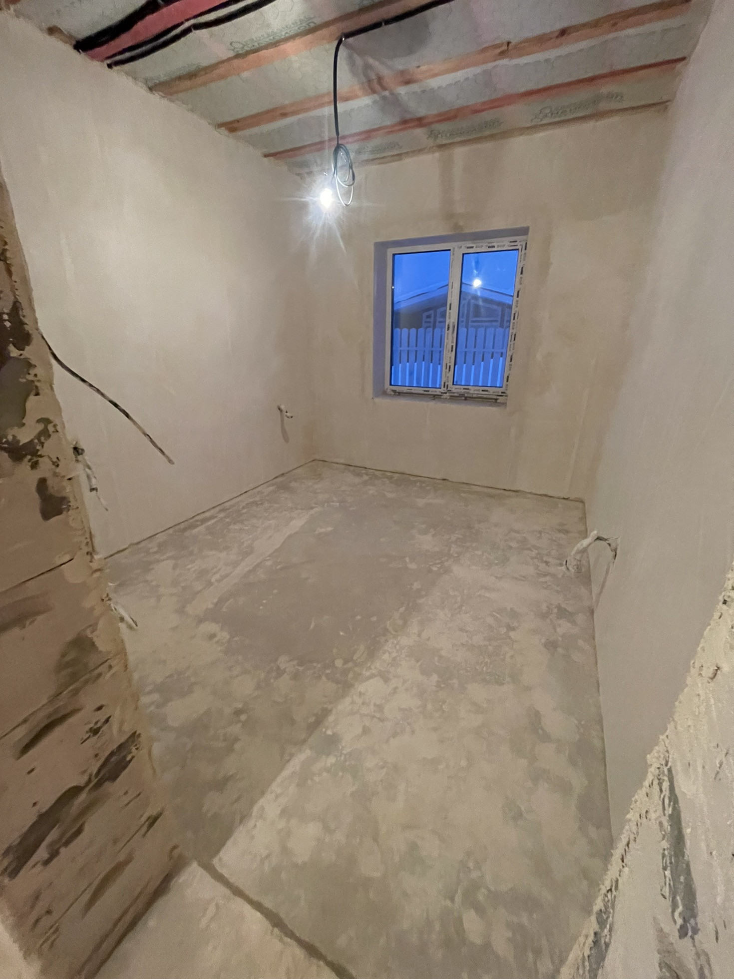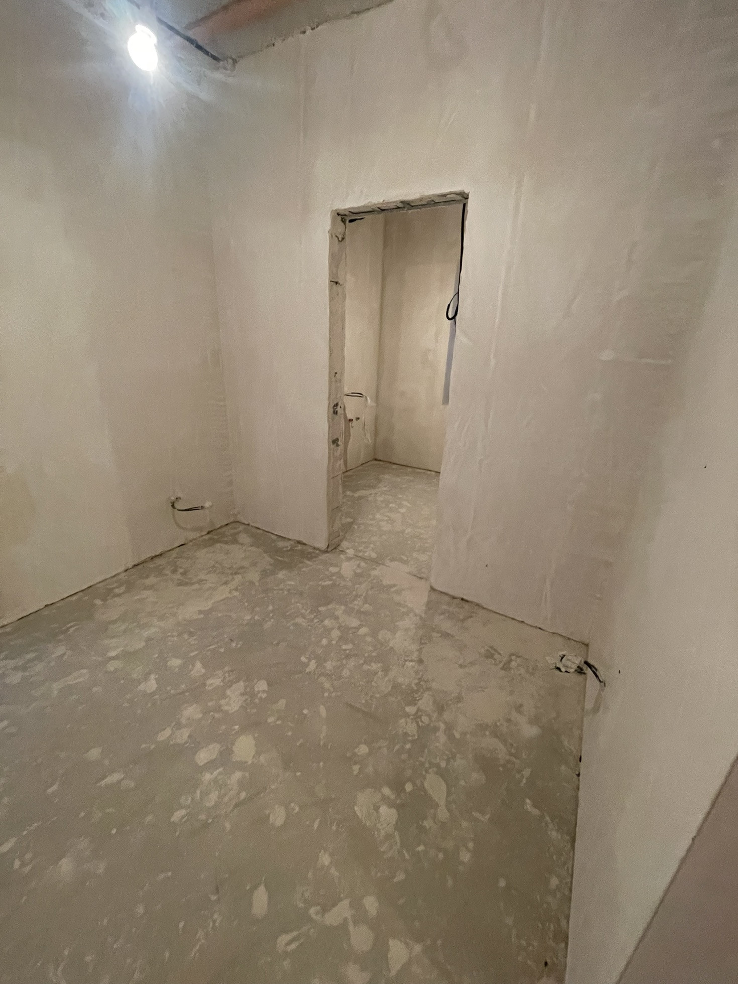 Стены оштукатурены, сделана стяжка пола.