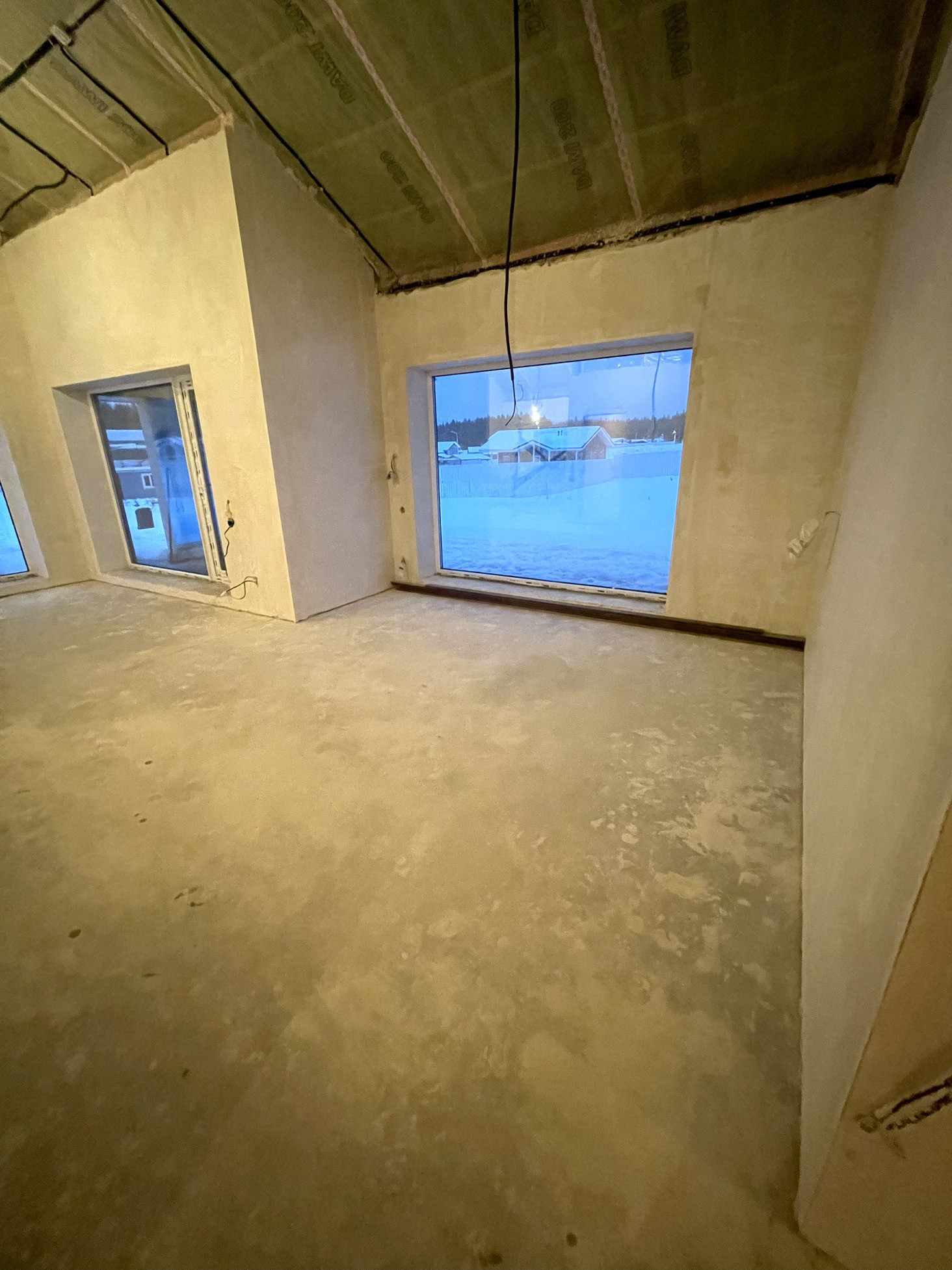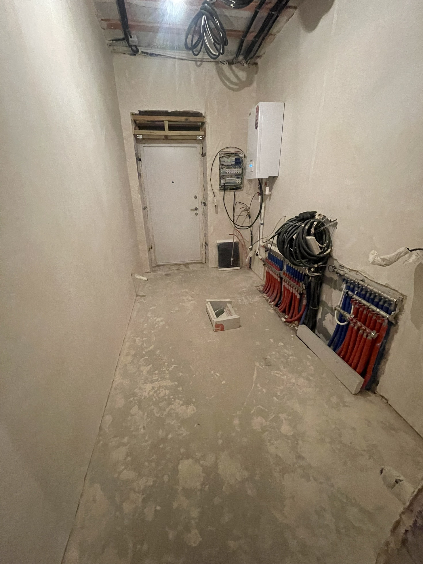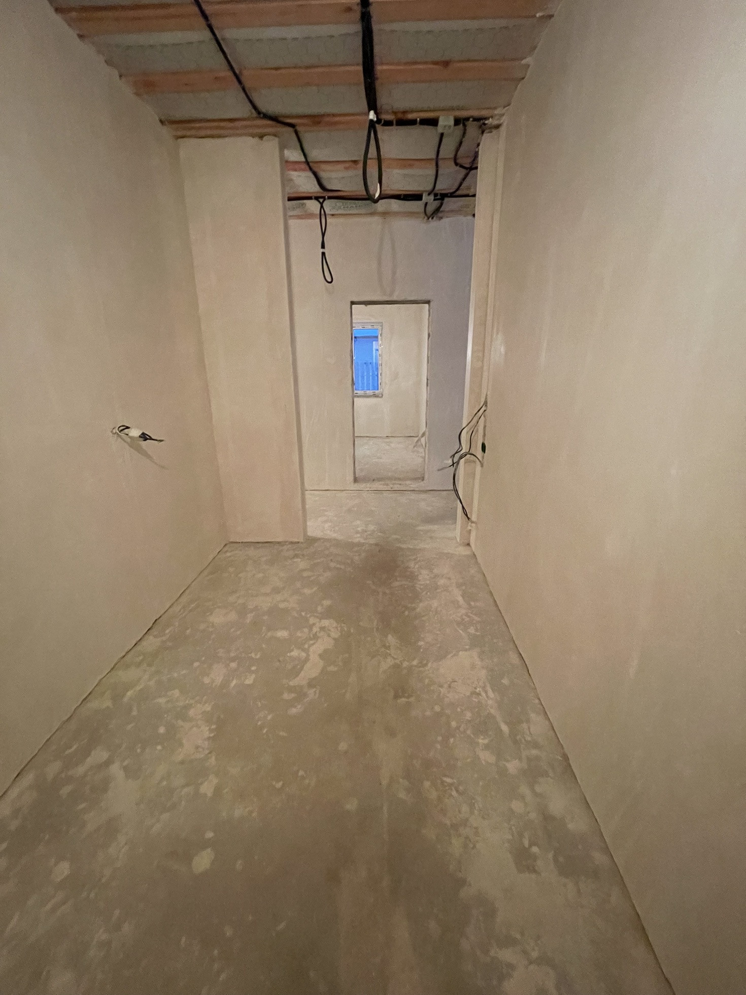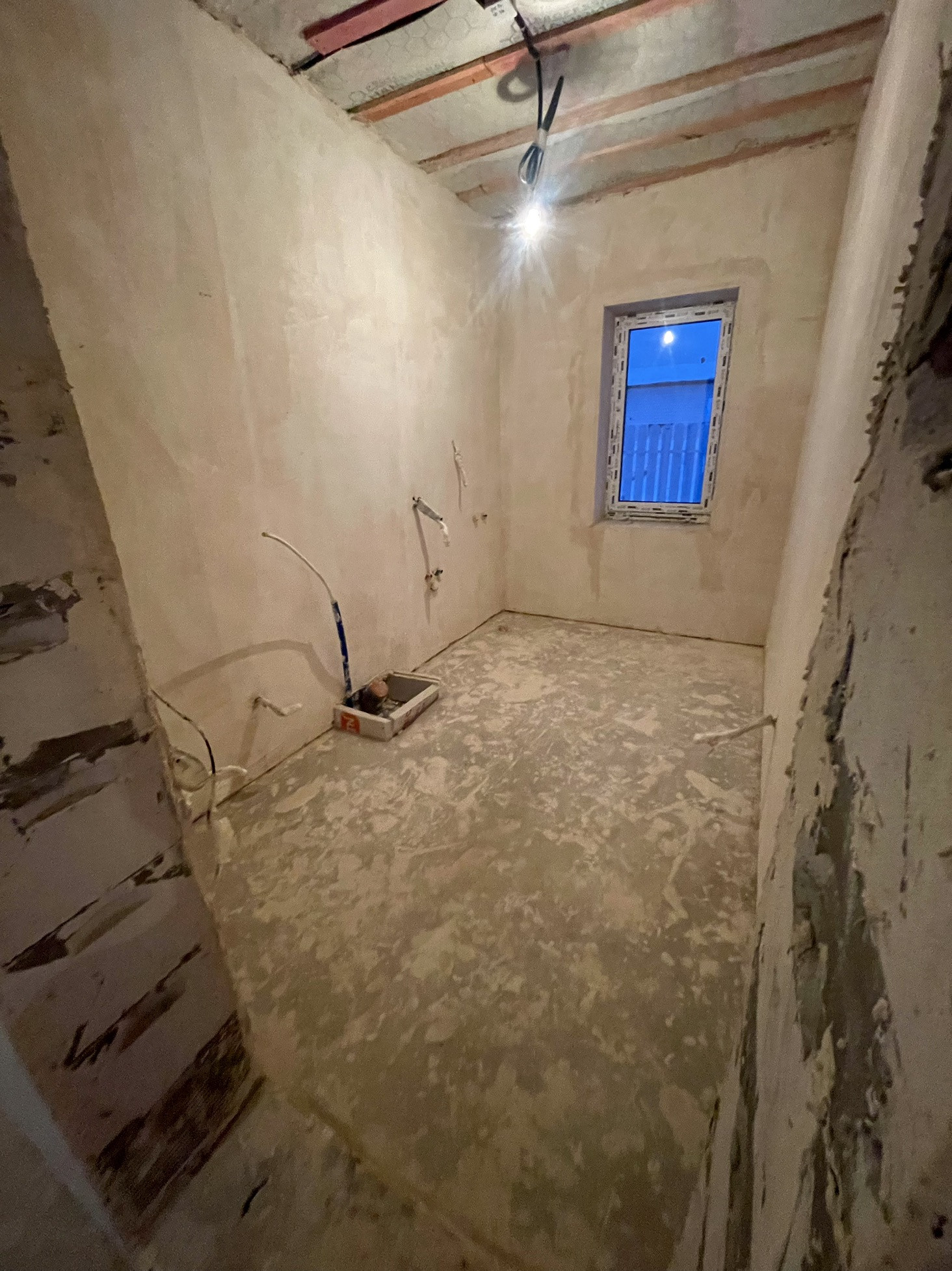 Стены оштукатурены, сделана стяжка пола.