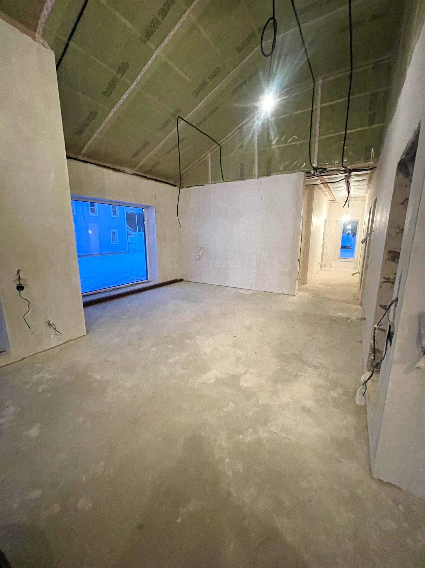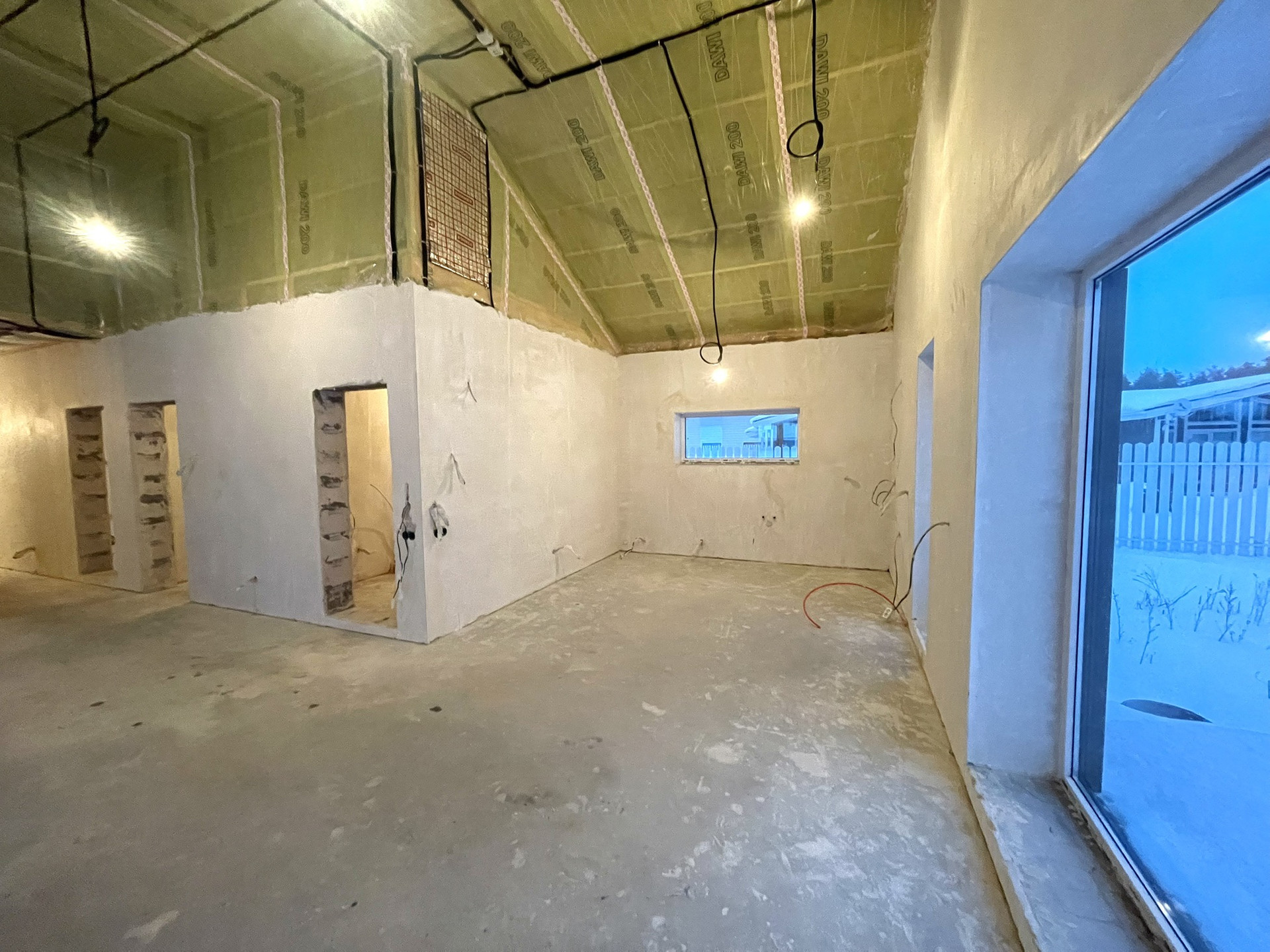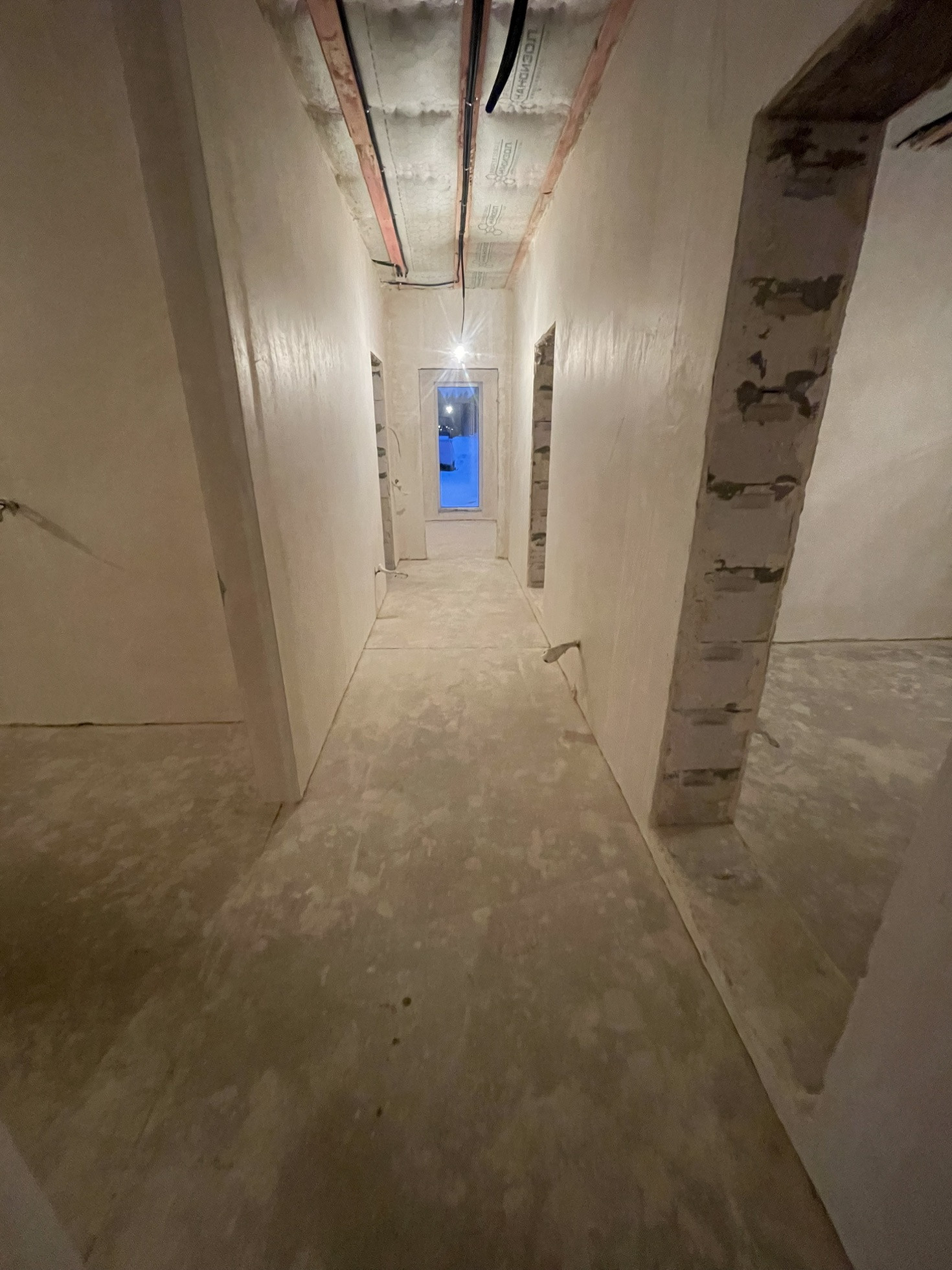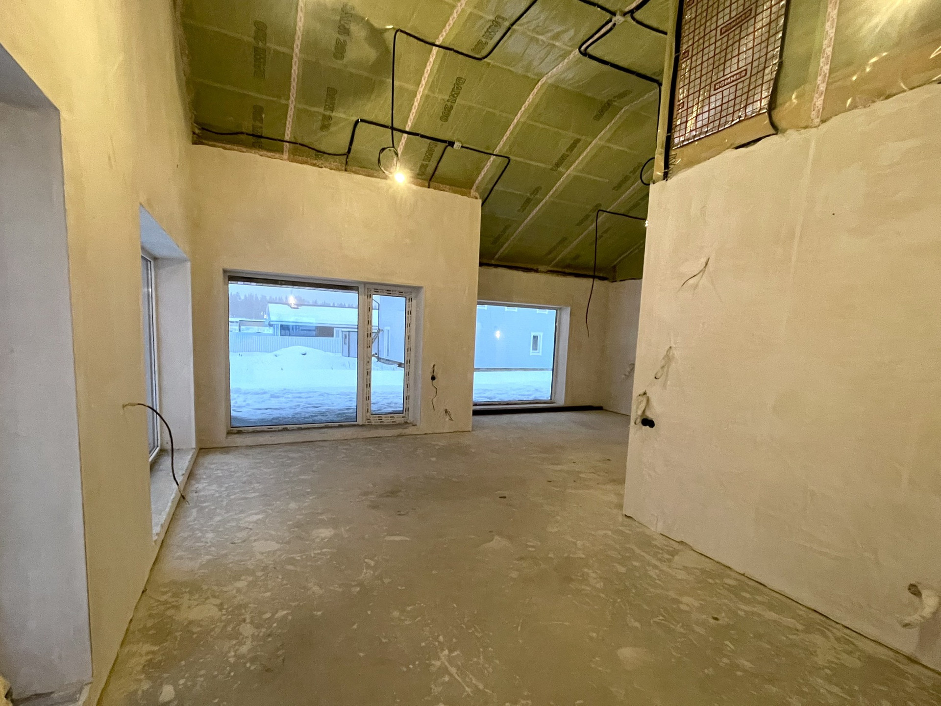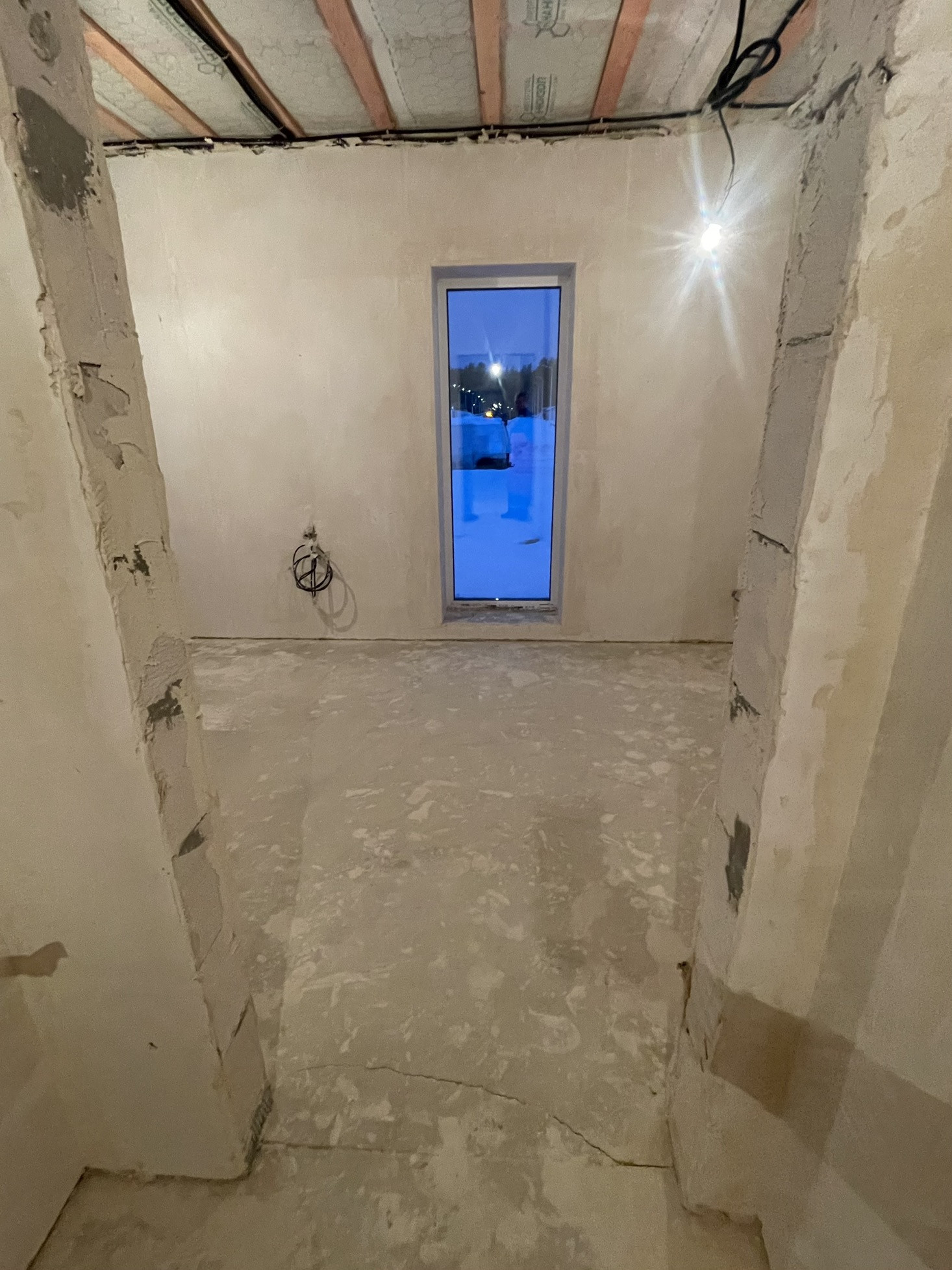 Стены оштукатурены, сделана стяжка пола.