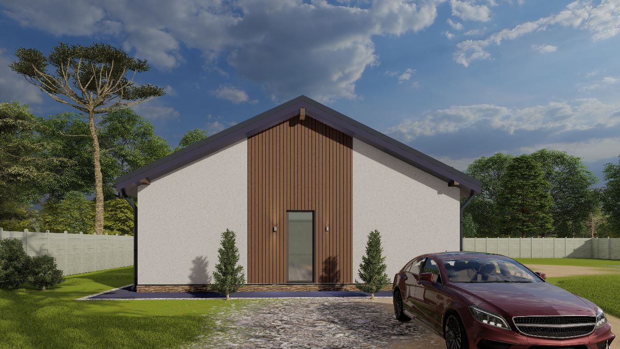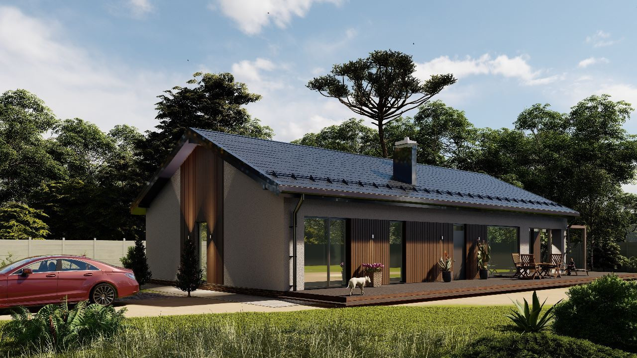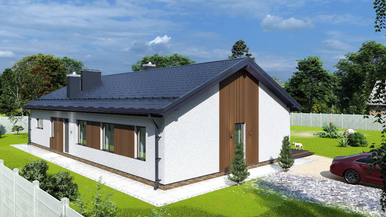 Теплый, современный, капитальный одноэтажный дом из газобетона на монолитной плите с высотой потолков до 5 м в кухне-гостинной и 3 м в спальнях, санузлах и тех.помещениях.