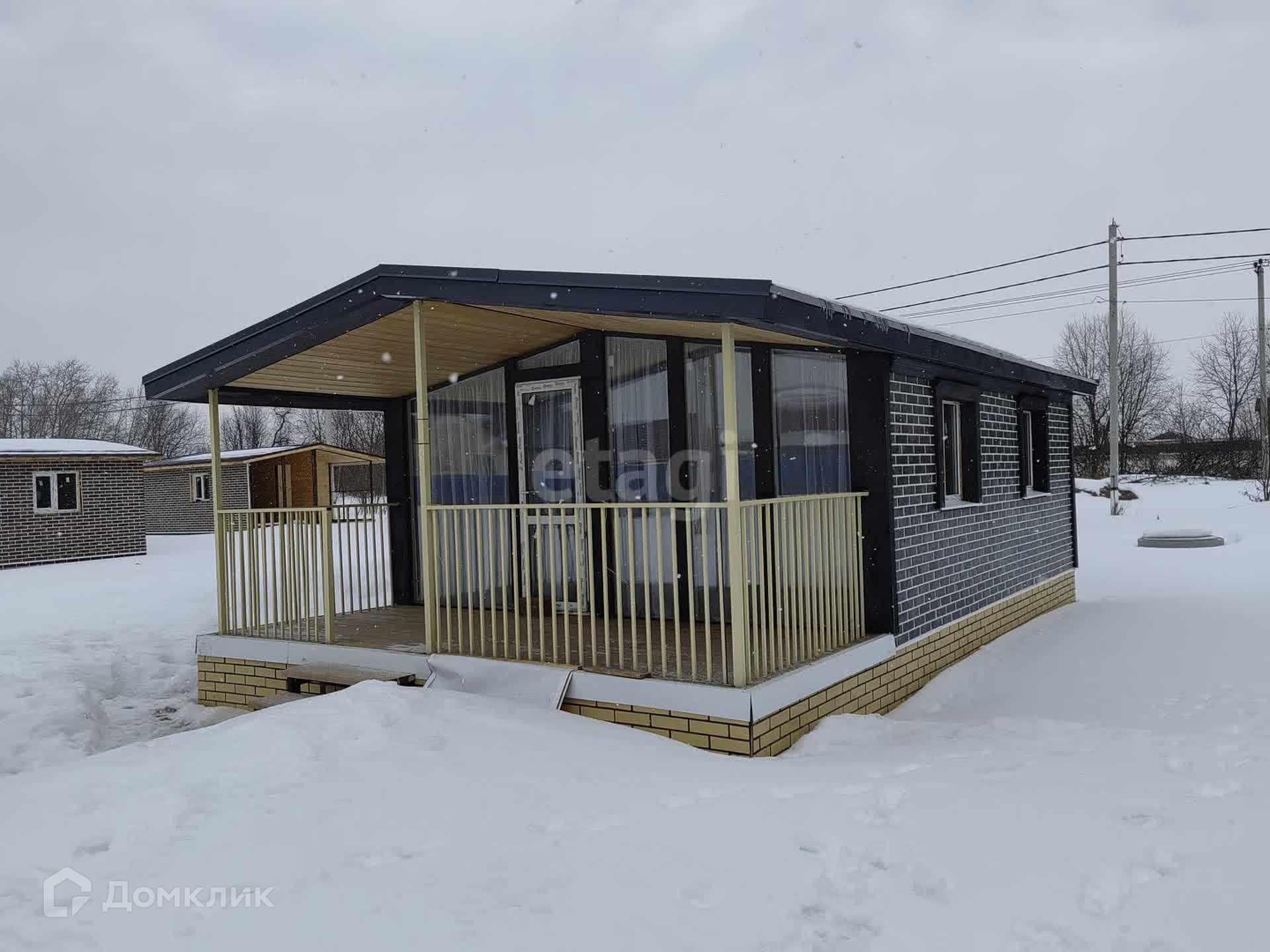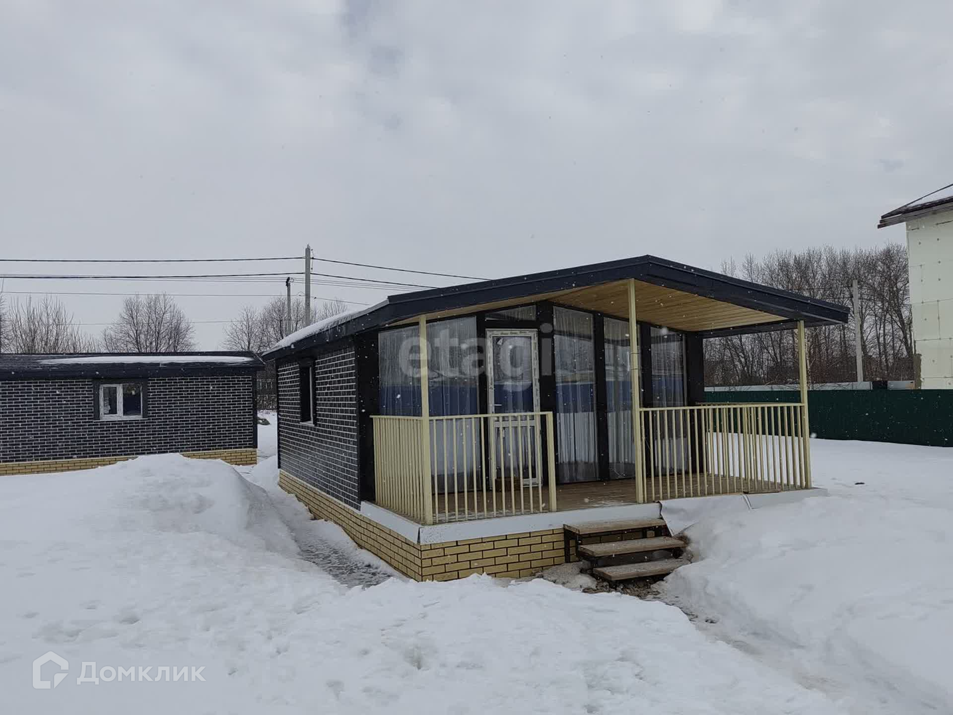 На участке шесть соток расположен дом с отделкой под ключ и заведёнными коммуникациями и строение под баню. Дом круглогодичный и отлично держит тепло даже в сильные морозы, значит работает 24/7.